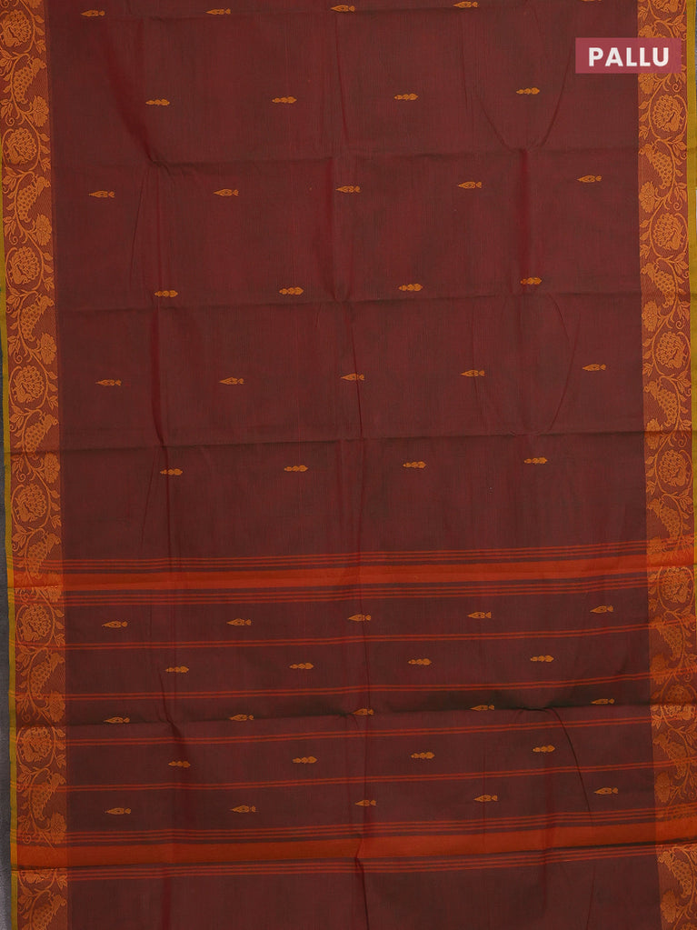 Chettinad cotton saree dual shade of maroon and green with thread woven buttas and thread woven border