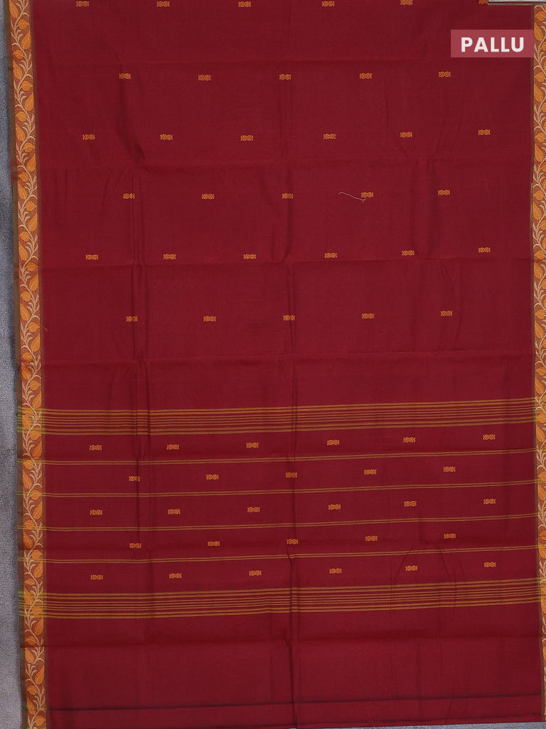 Chettinad cotton saree maroon shade with thread woven buttas and thread woven border