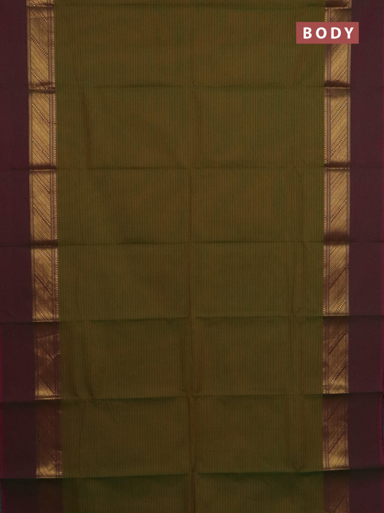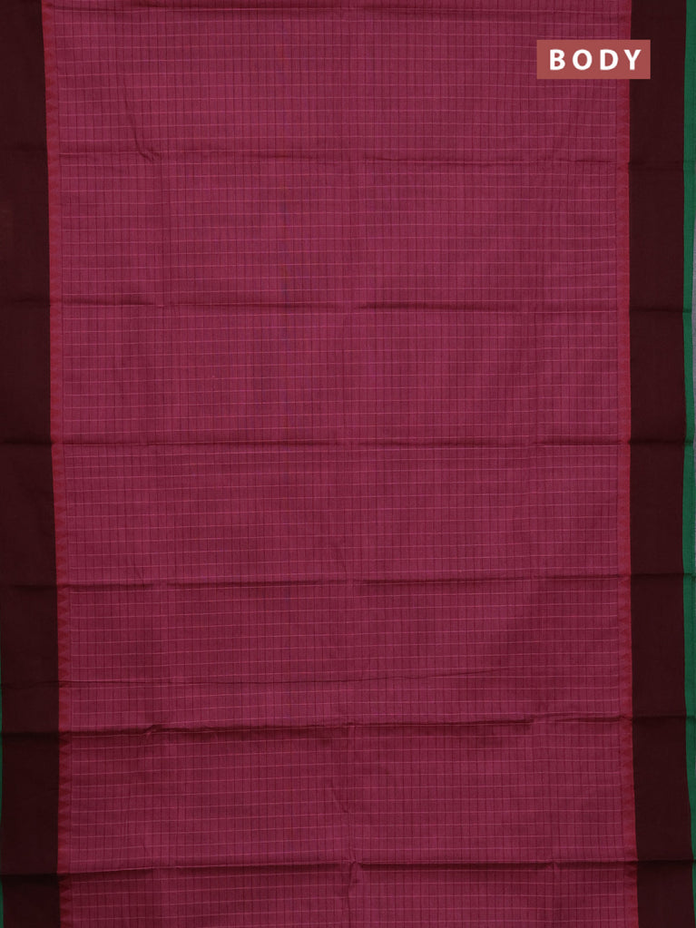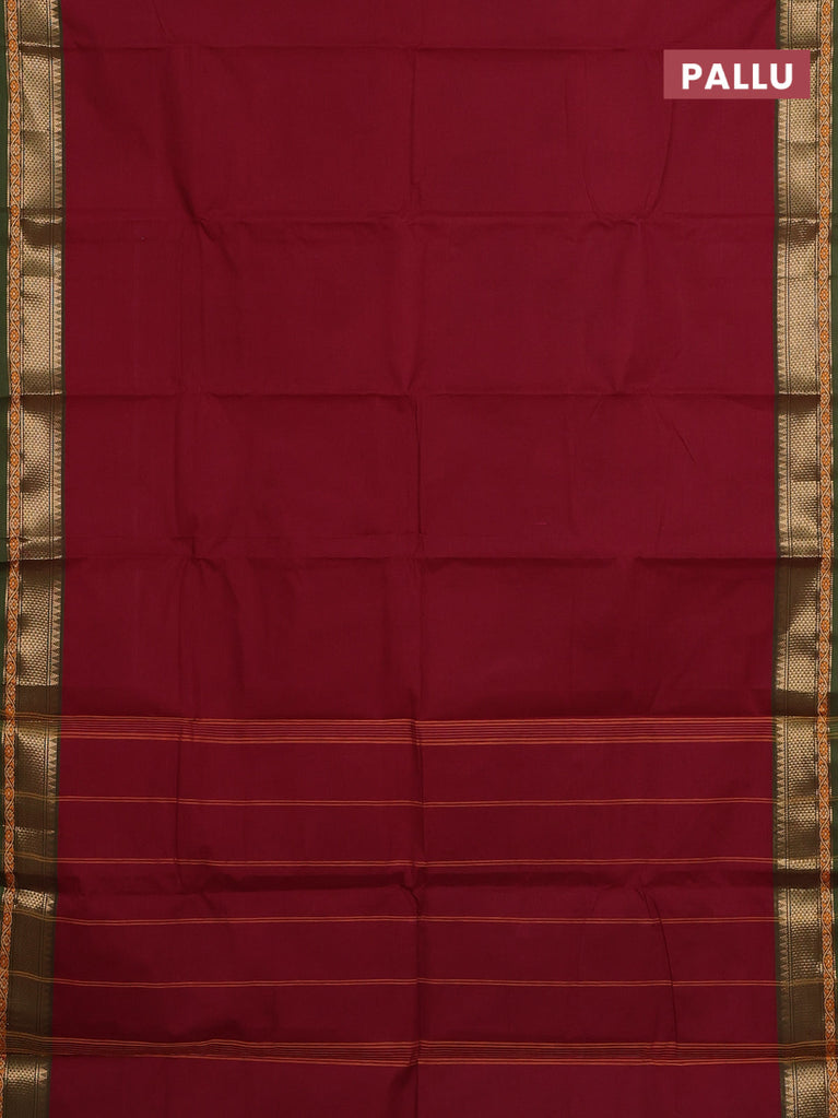 Chettinad cotton saree maroon and sap green with plain body and zari woven border