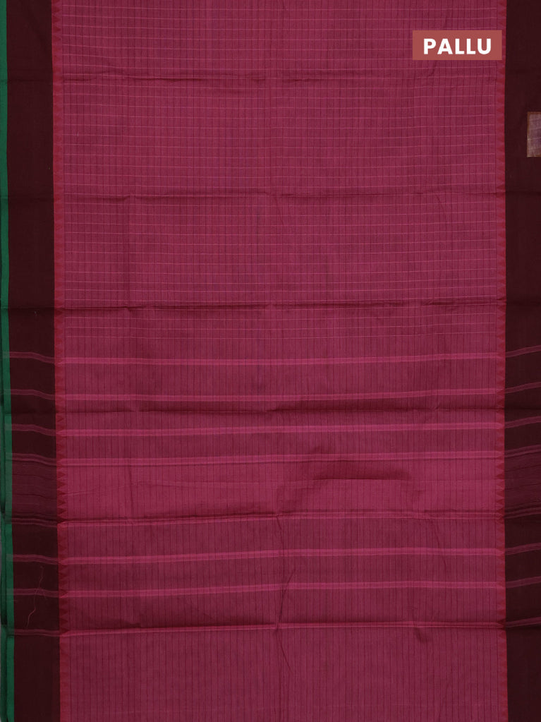 Chettinad cotton saree mauve pink and deep maroon with allover checked pattern and simple border