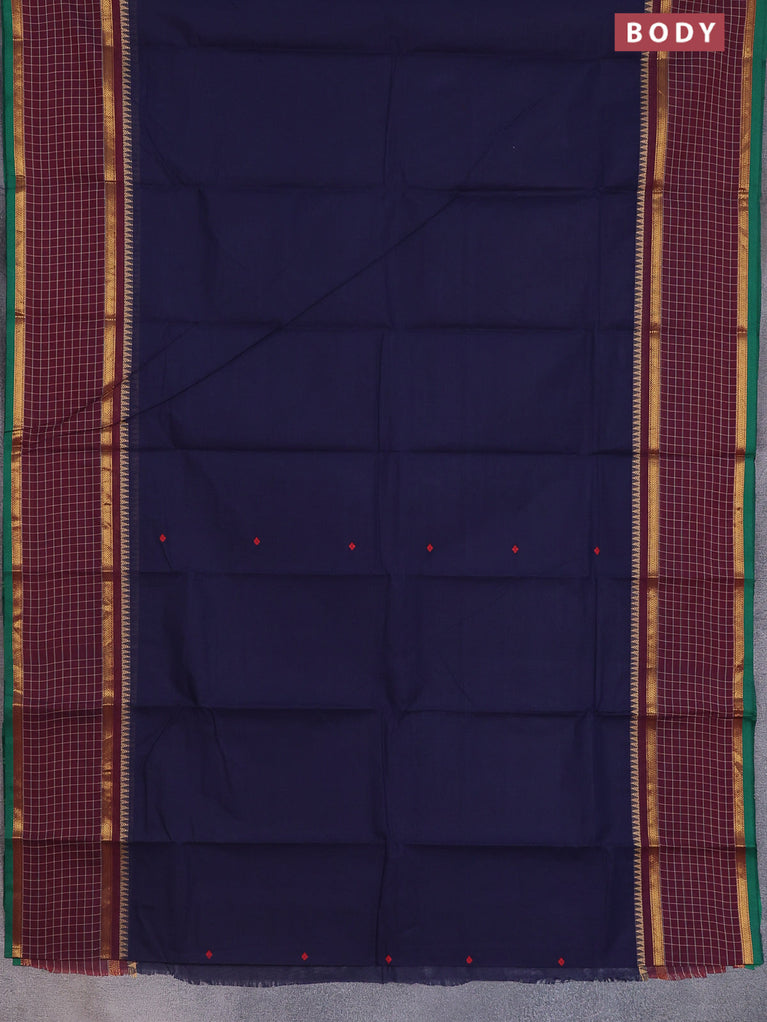 Chettinad cotton saree navy blue and deep maroon with thread woven buttas and zari woven checked border