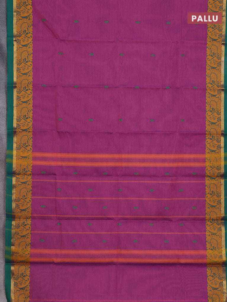 Chettinad cotton saree mild purple shade and green with thread woven buttas and thread & zari woven border