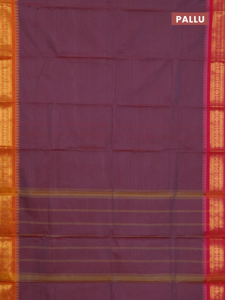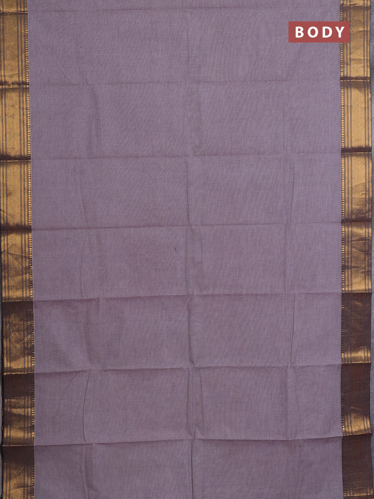Chettinad cotton saree mauve pink and deep coffee brown with thread woven buttas and zari woven border