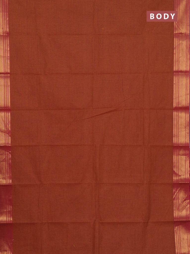 Chettinad cotton saree maroon shade with allover small checked pattern and zari woven border