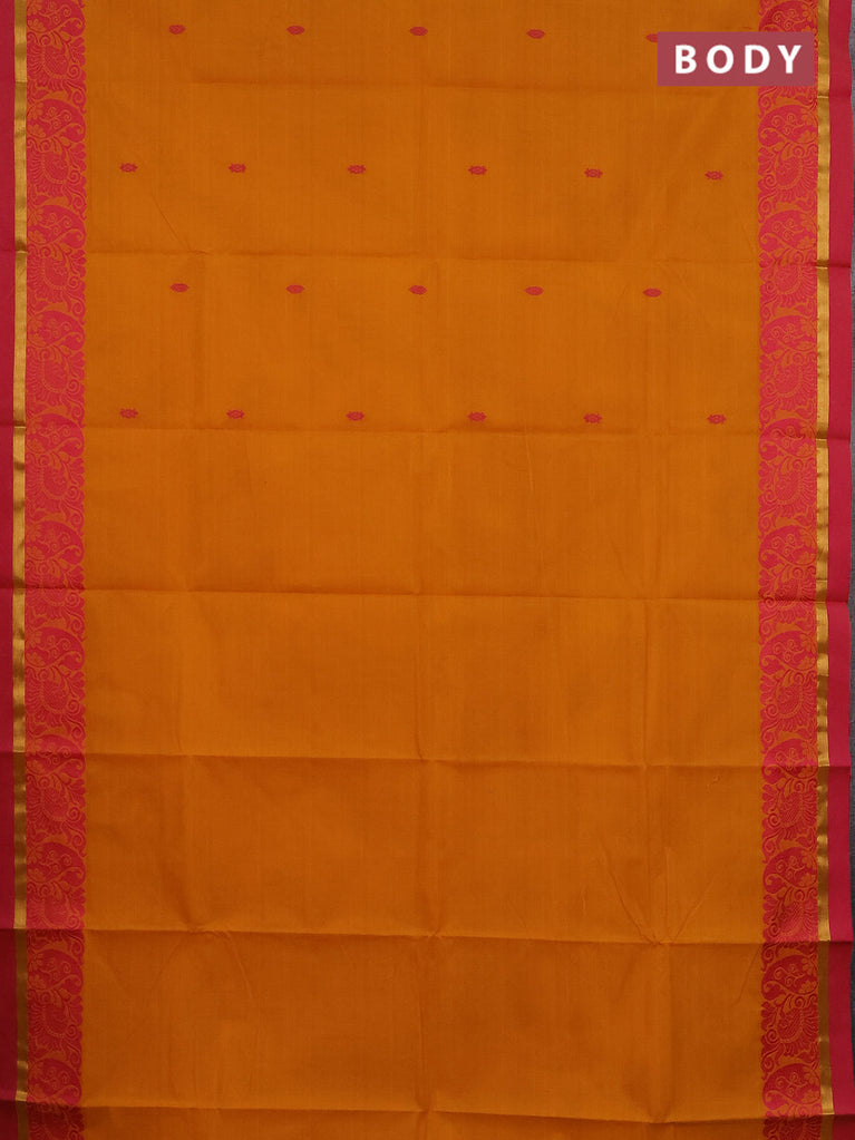 Chettinad cotton saree mustard yellow and pink with thread woven buttas and thread woven zari simple border