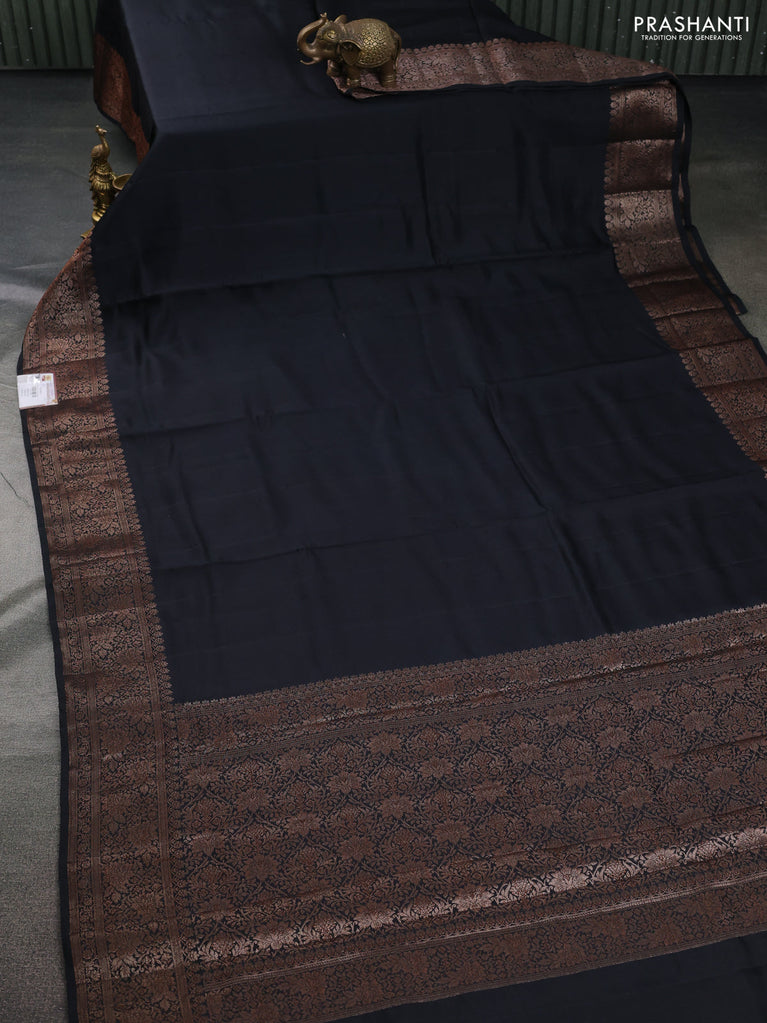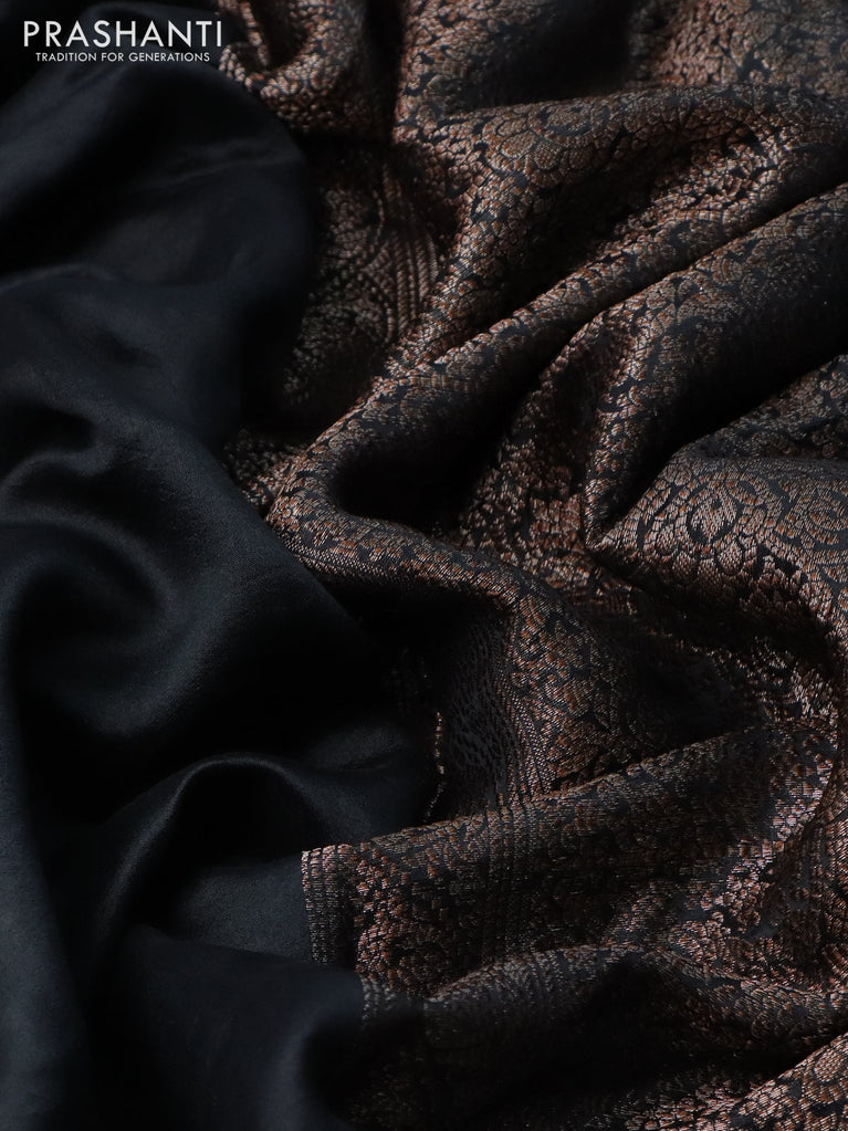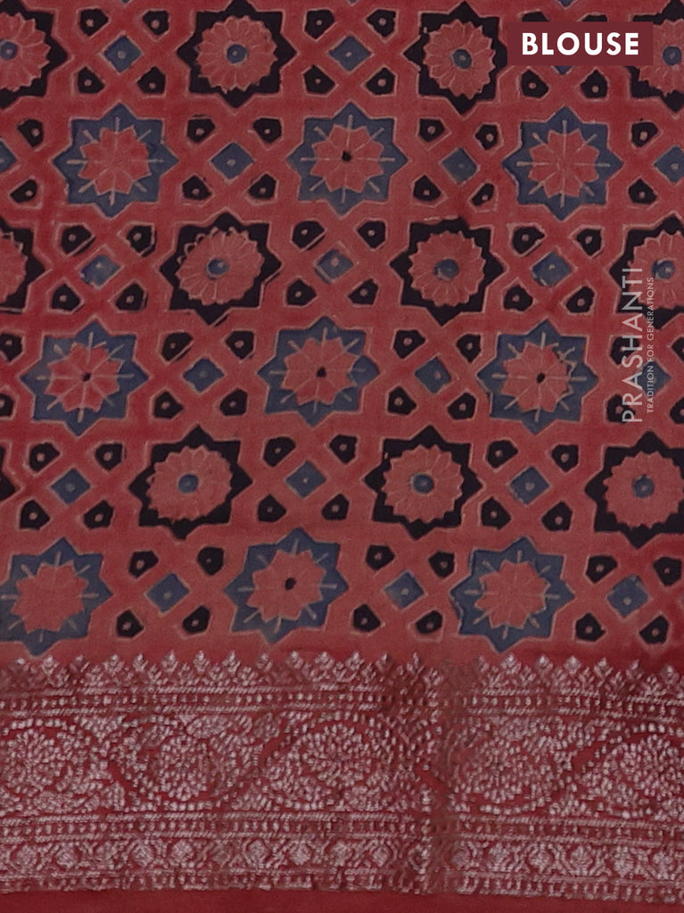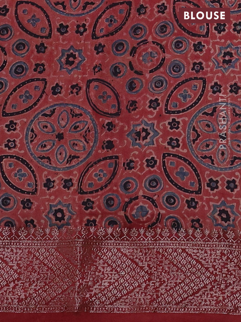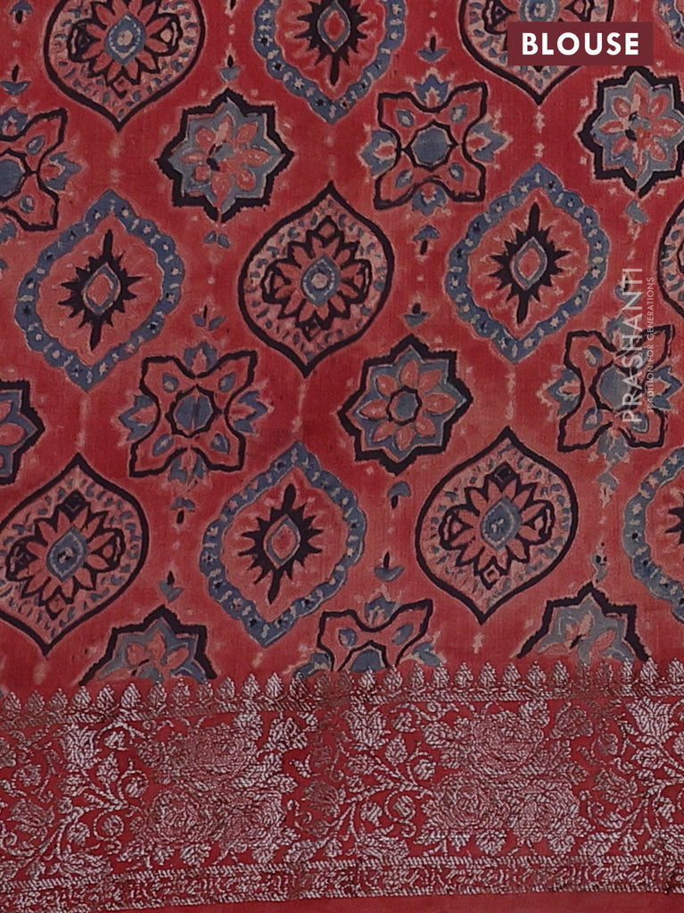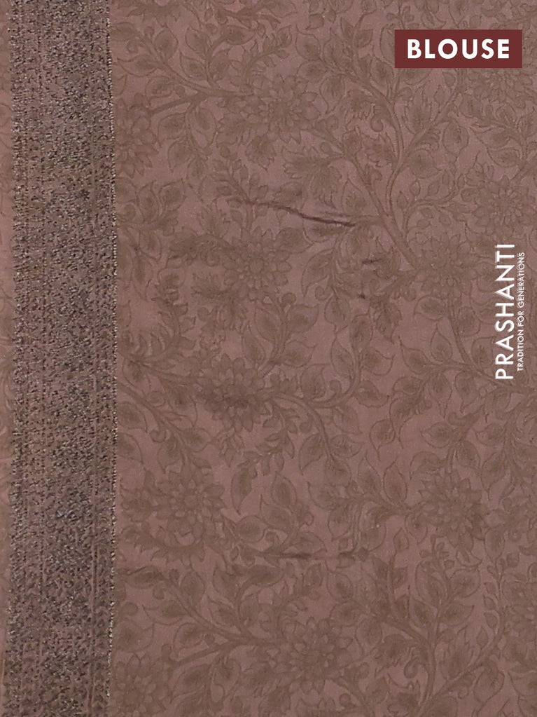 Chiniya silk saree brown with allover woven buttas & kalamkari digital prints and banarasi style border