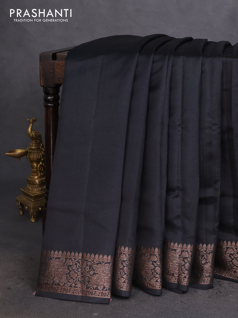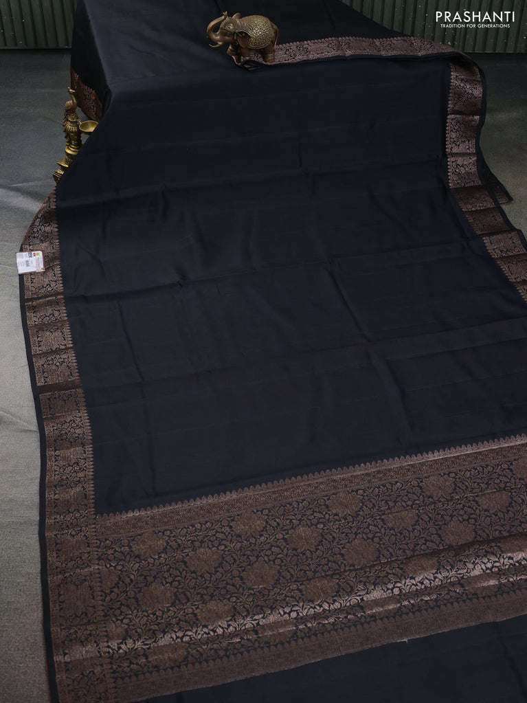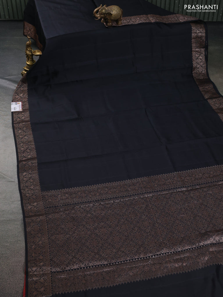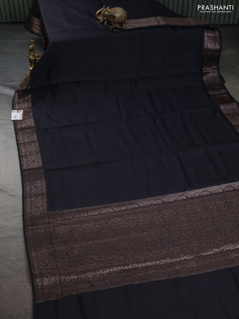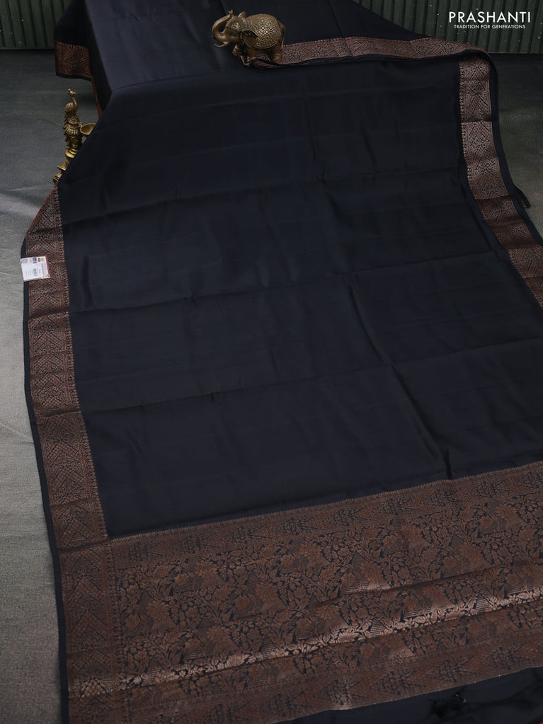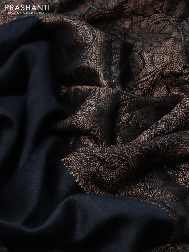 Chiniya silk saree brown with allover woven buttas & kalamkari digital prints and banarasi style border
