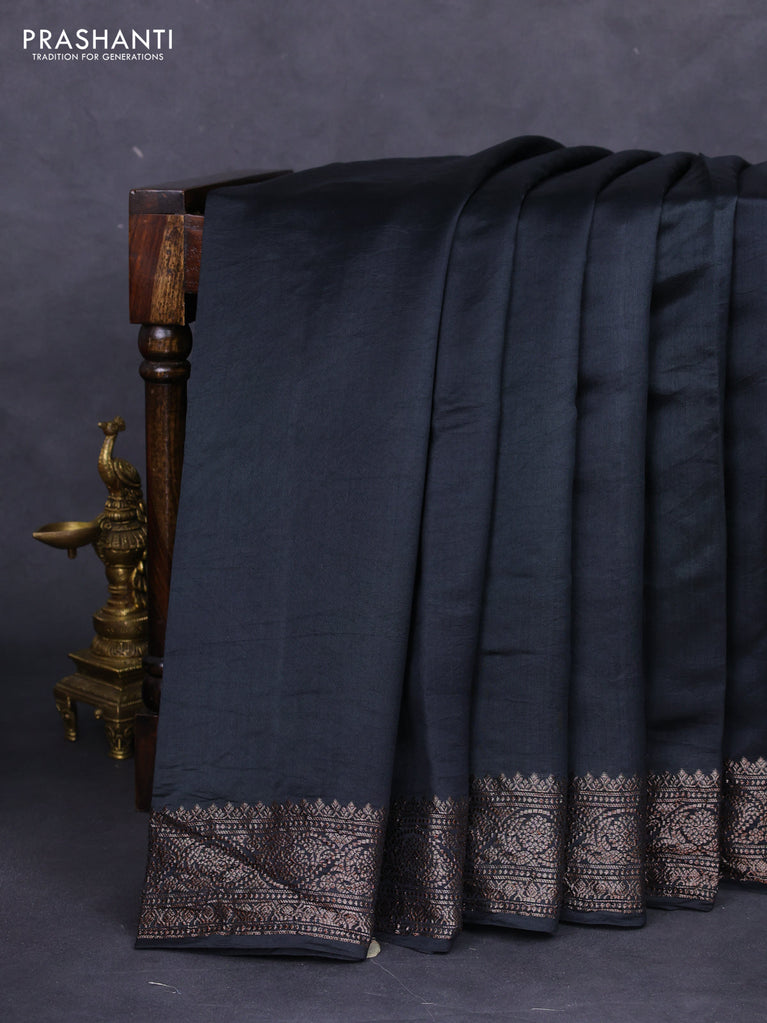 Chiniya silk saree cs blue and deep jamun with plain body and woven border