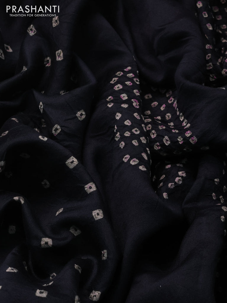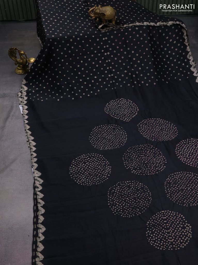 Chiniya silk saree brown with allover silver zari buttas & bandhini prints and silver zari woven border