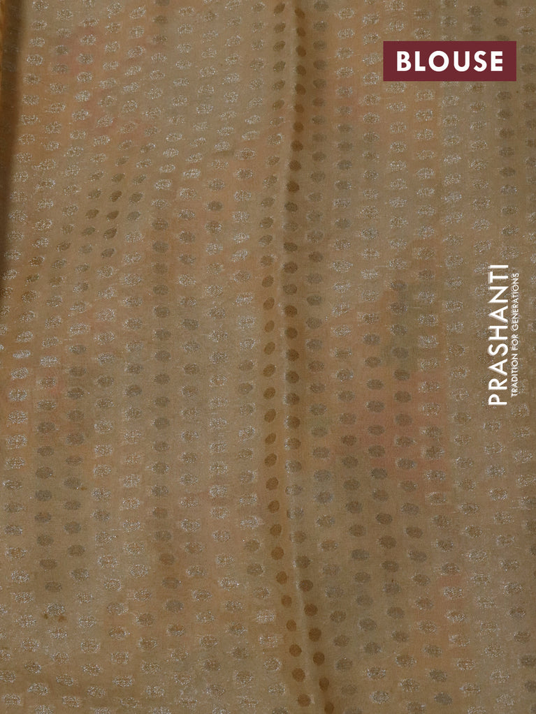 Chiniya silk saree brown with allover silver zari buttas & bandhini prints and silver zari woven border