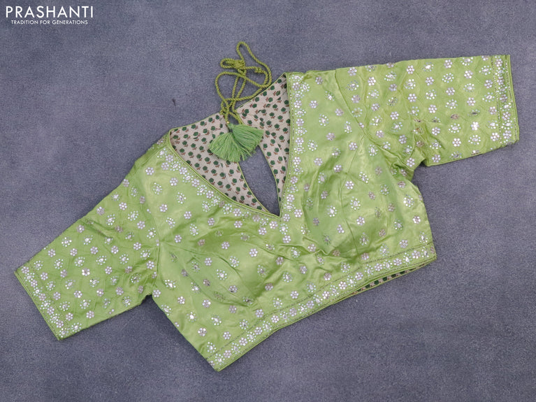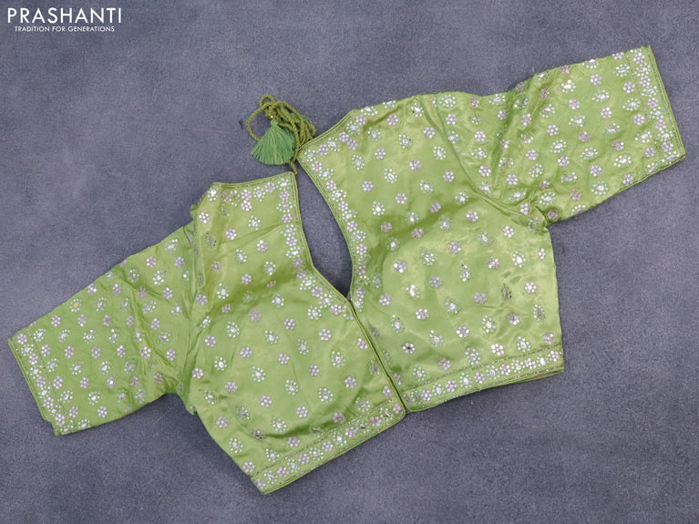 Chiffon silk saree pista green with satin finished in borderless style & embroidered readymade blouse