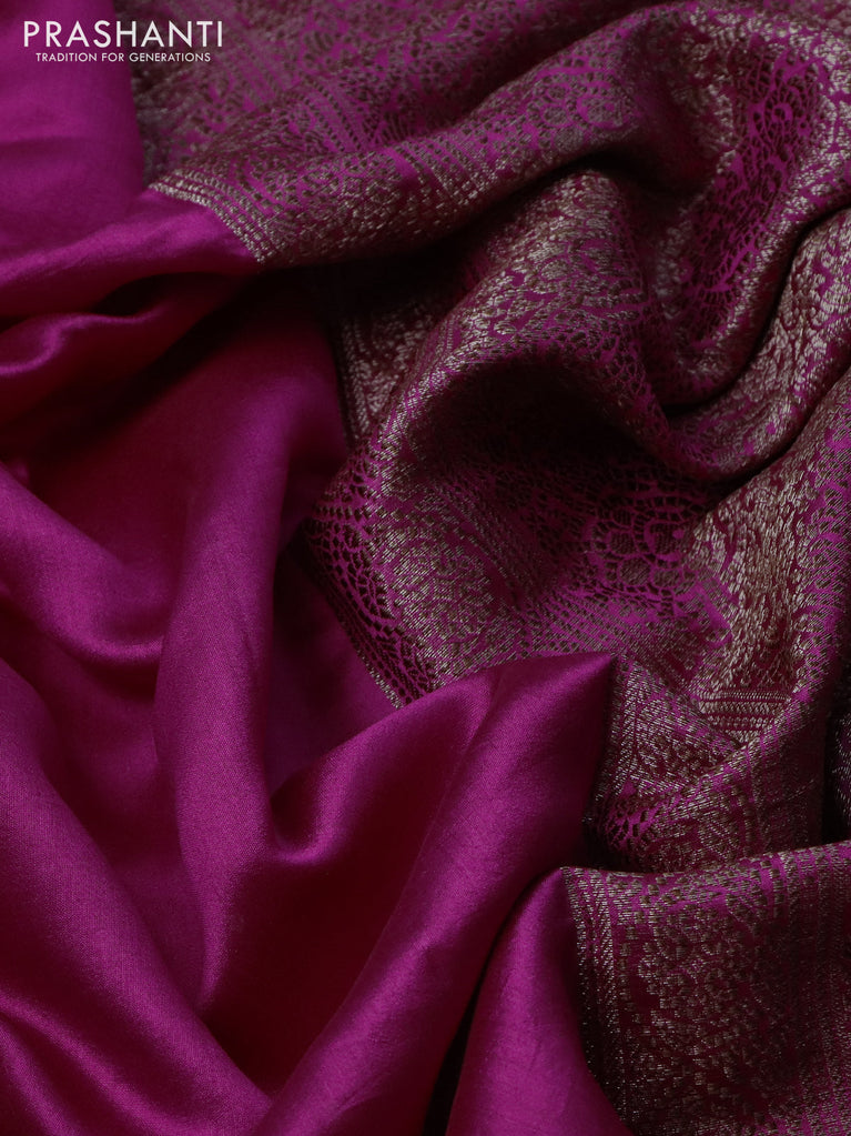 Chiniya silk saree maroon and deep jamun with plain body and woven border