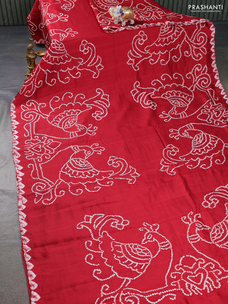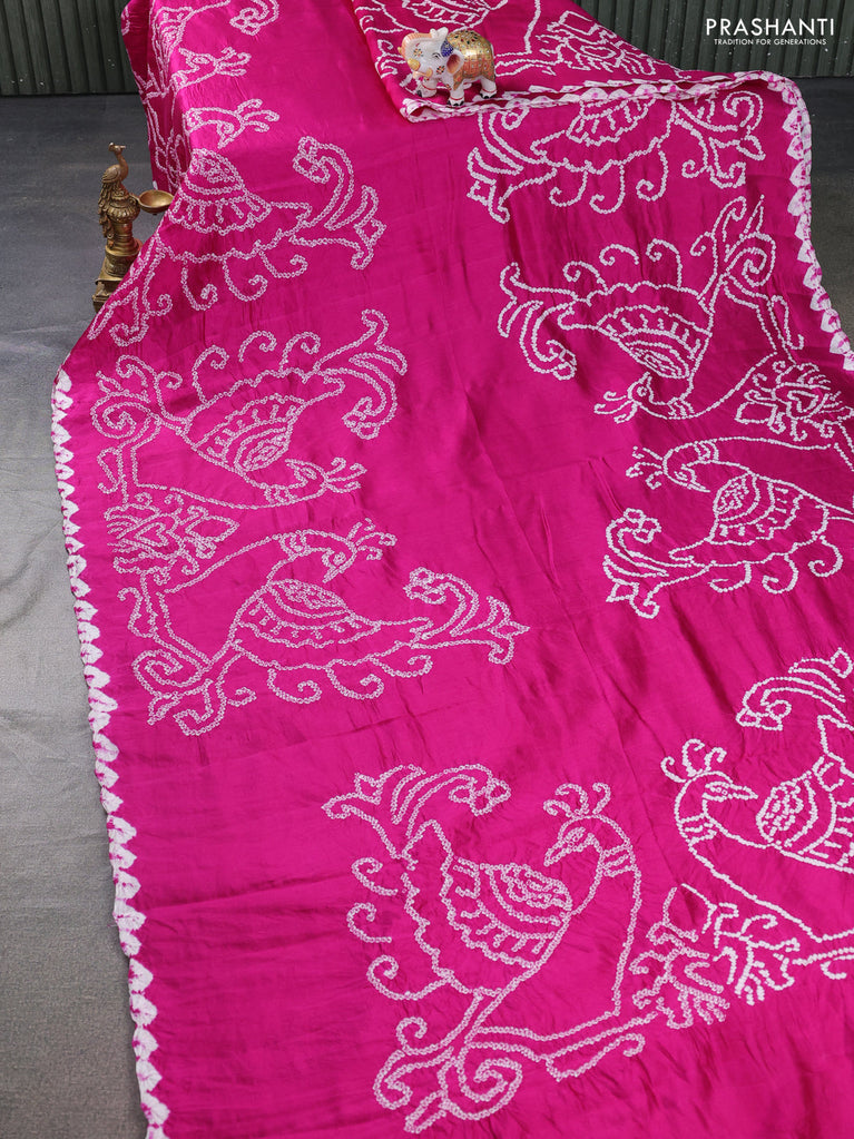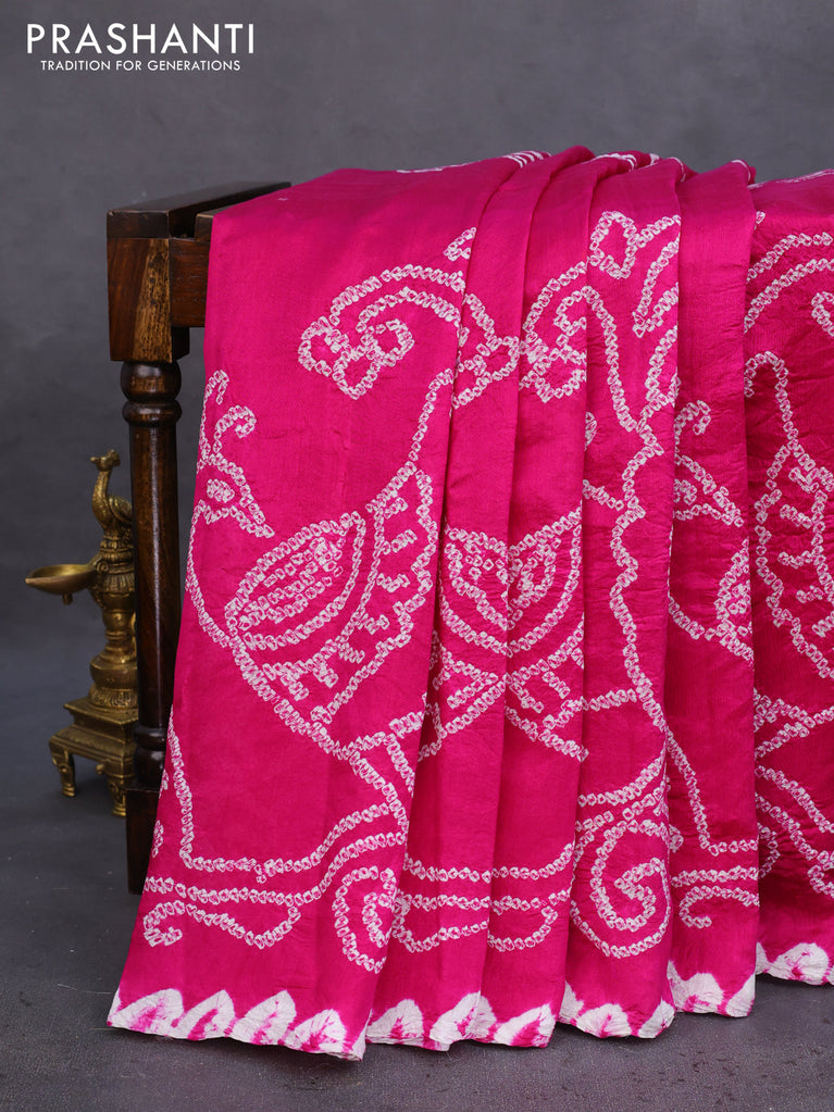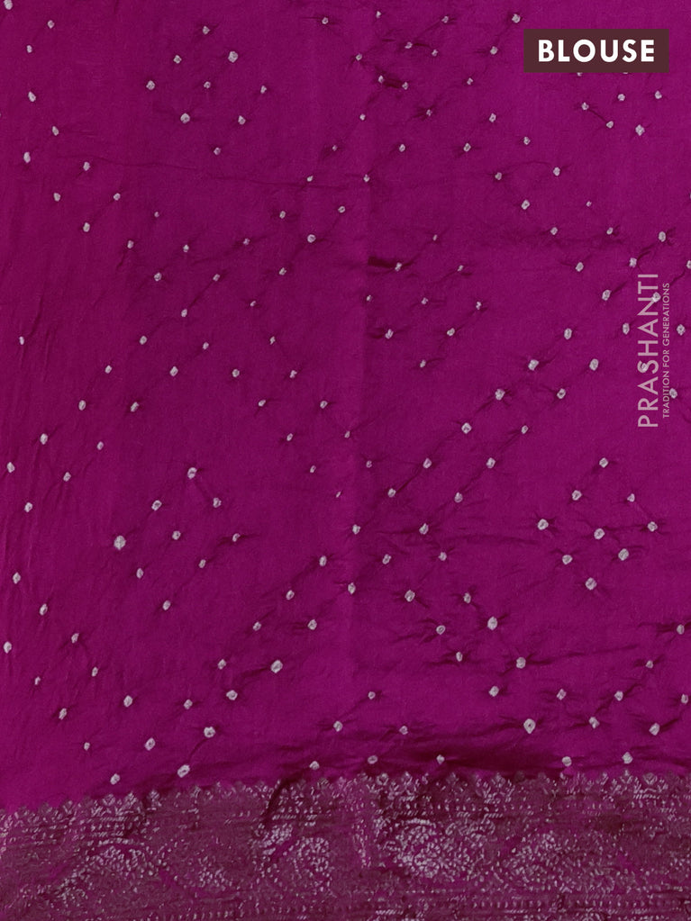 Chiniya silk saree mauve pink with allover silver zari buttas & bandhini prints and silver zari woven border