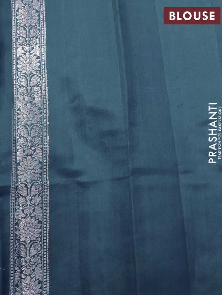 Chiniya silk saree peacock blue with allover zari weaves & buttas in borderless style