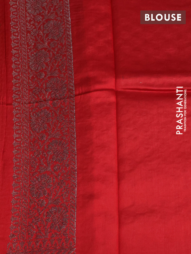 Chiniya silk saree pastel blue and pastel maroon with woven buttas & digital prints and zari woven border