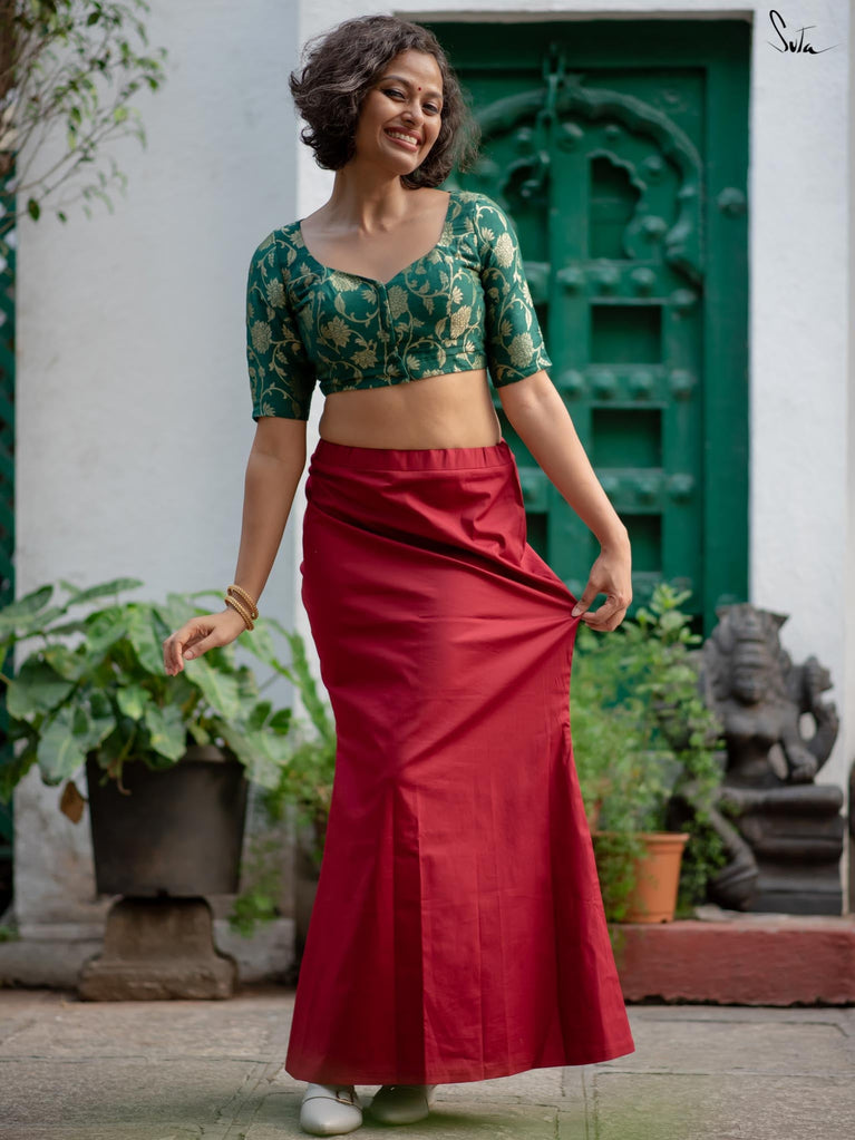 The Coral Play underskirts are crafted from soft, breathable cotton, creating a smooth and comfortable foundation for your sarees. Lightweight yet stretchable, they allow your saree to drape perfectly, highlighting every pleat and fold.