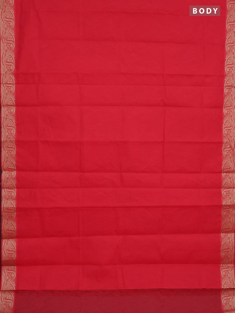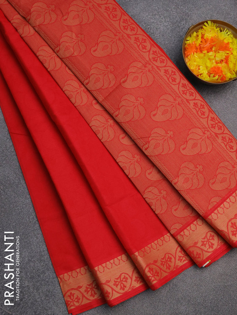 Coimbatore cotton saree red with allover self emboss and thread woven border