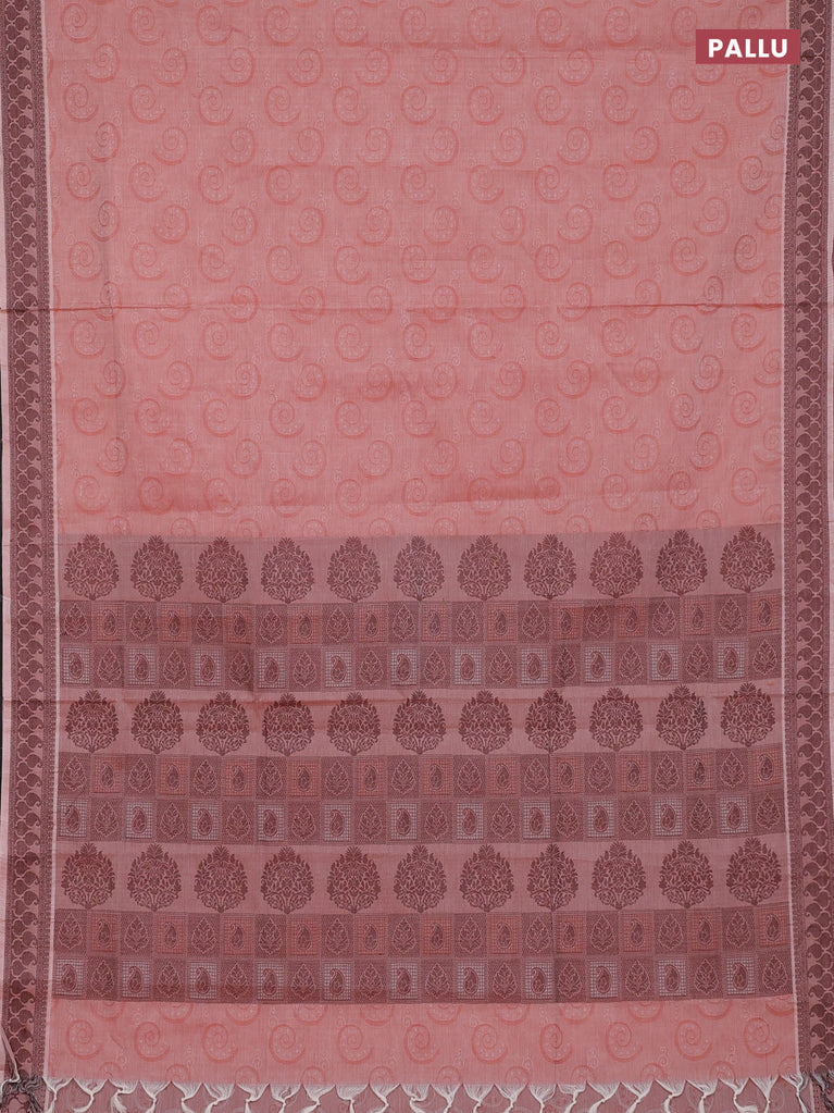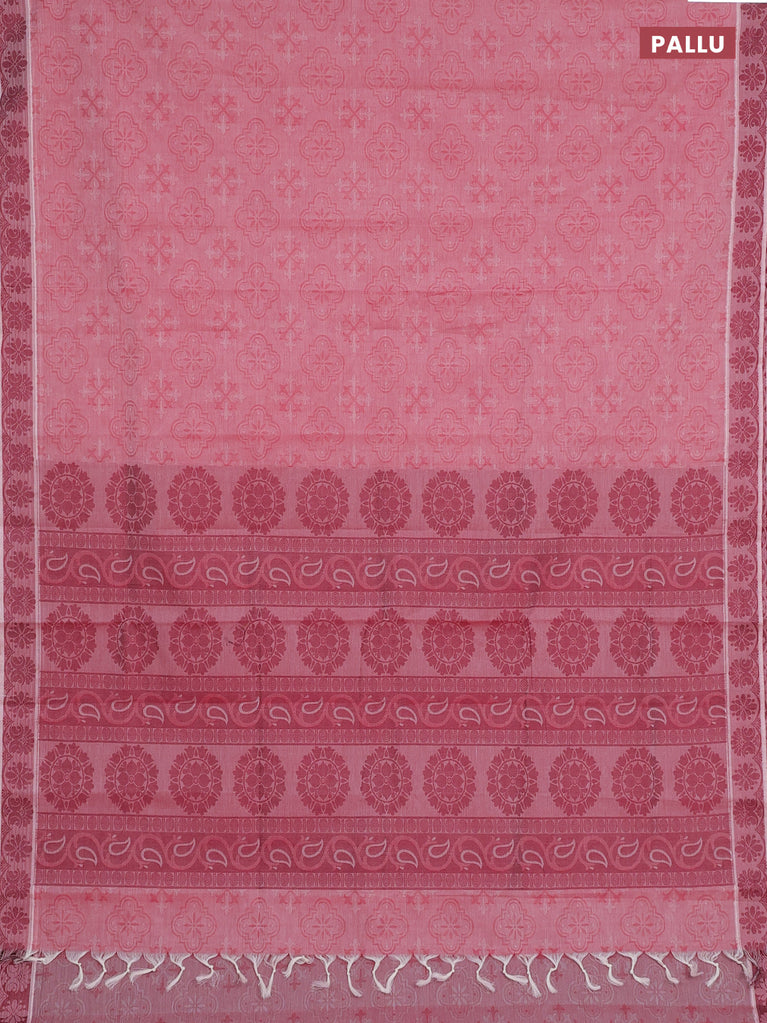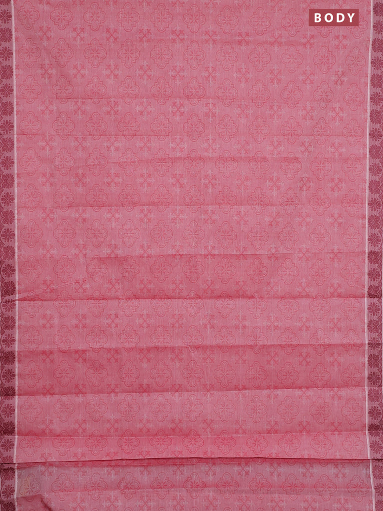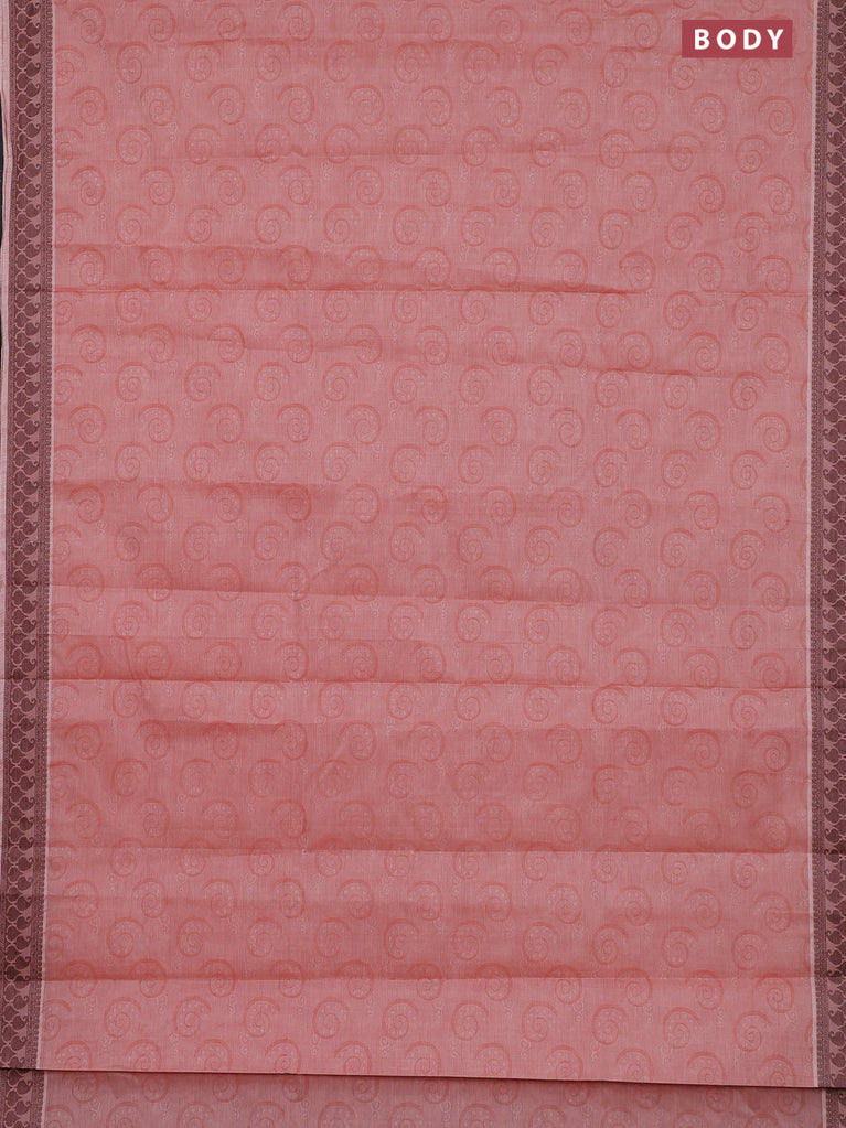 Coimbatore cotton saree rust shade and pink with allover self emboss and thread woven border