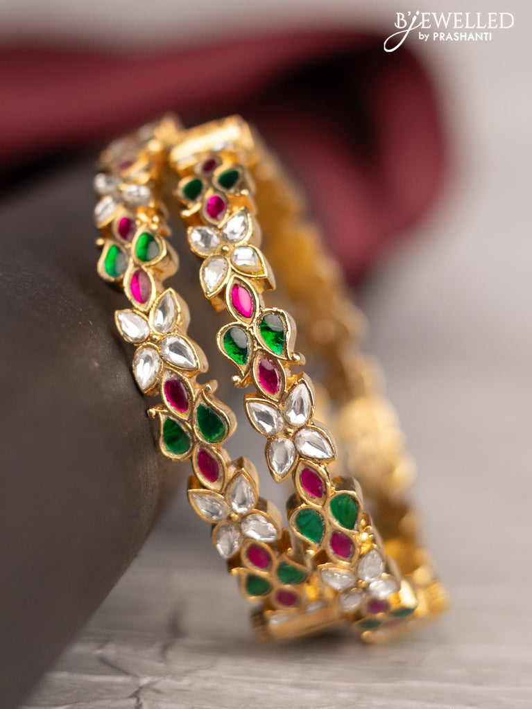 Antique screw type bangle with green jadau stones