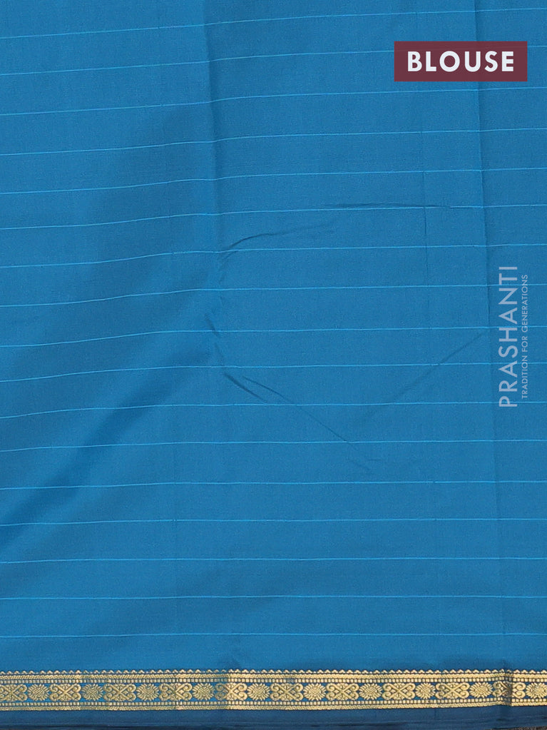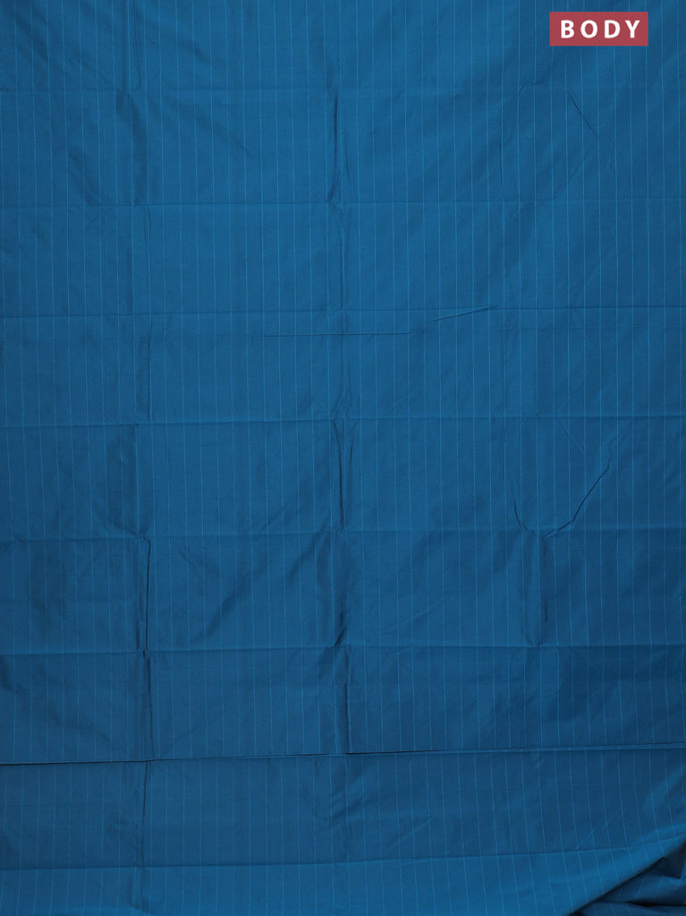 Arani semi silk saree peacock blue with plain body and zari woven border