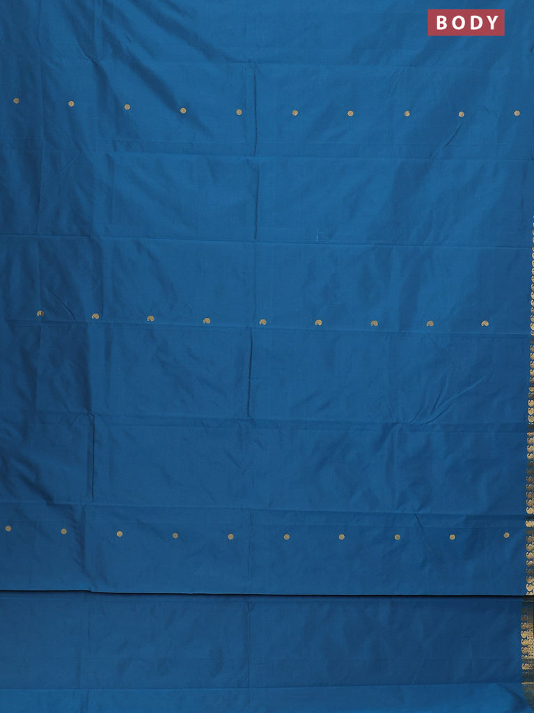 Arani semi silk saree peacock blue with zari woven thilak buttas and zari woven border