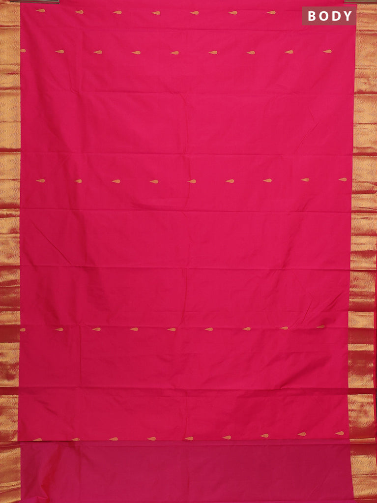 Arani semi silk saree pink with rudhraksha & paisley zari woven buttas and zari woven border