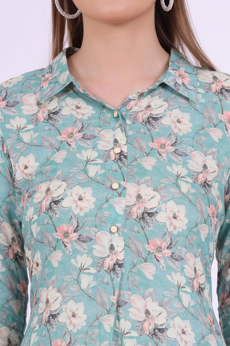 Get Styled For An Elevated Office Look In This Stylish Blue Printed Western Top By W. It Has Shirt Sleeves And Mandarin Collar.