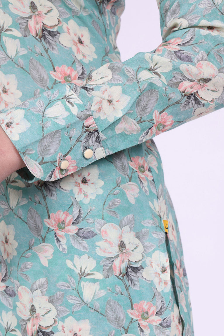 Blue Coloured Winter kurta In Straight Silhouette. It Features Round Neckline, Multi-Coloured Printe All Over And Embroidery.
