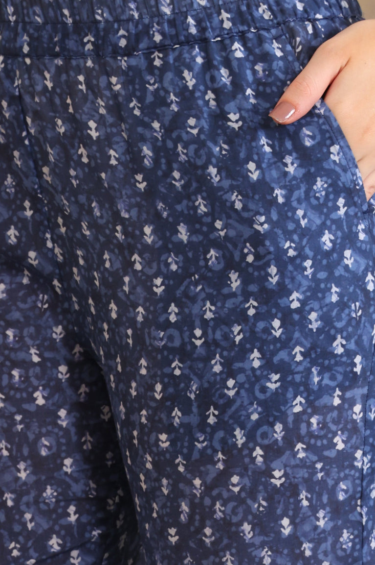 Indulge in the charm of this blue printed kurta and trouser set, designed to offer both style and comfort. The pure cotton fabric ensures breathability and softness, making it ideal for all-day wear. The kurta features a band collar and 3/4th sleeves, adorned with intricate prints that exude elegance. The straight silhouette and side slits add a contemporary touch, perfect for casual outings or family gatherings. The matching trousers, with their mid-rise waist and woven pattern, complete the look effortlessly. Pair this set with statement earrings and sandals for a chic, ethnic ensemble. Embrace sustainable fashion with this beautifully crafted outfit, where tradition meets modernity.