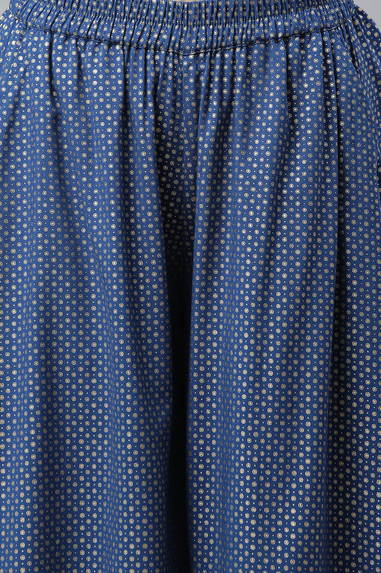 Blue Zari Embroidered Straight Kurta and Printed Skirt and Dupatta Set