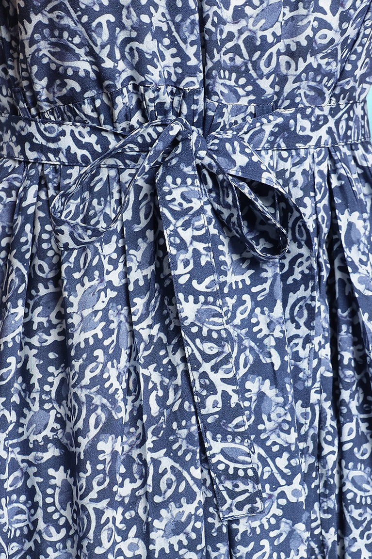 Embrace artisanal charm with this blue flared dress crafted in breathable modal fabric and adorned with batik-inspired prints. The soft silhouette cascades beautifully, giving you ease of movement and all-day comfort. Front buttons lend a hint of detail while maintaining a clean, minimalist appeal. This batik printed modal dress is an excellent pick for brunches, weekend getaways, or laid-back festive moments. The flared silhouette adds drama while keeping the look breezy and feminine. The modal fabric drapes like a dream and is gentle on the skin, making it perfect for humid days. Whether styled with heels or flats, this batik dress is designed for effortless elegance.