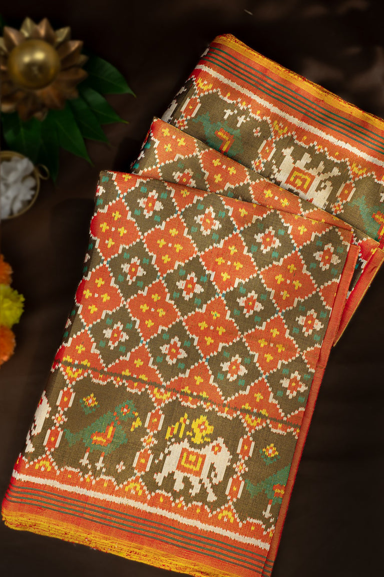 Varamahalakshmi Mehendi Green & Orange Patola Ikat Saree