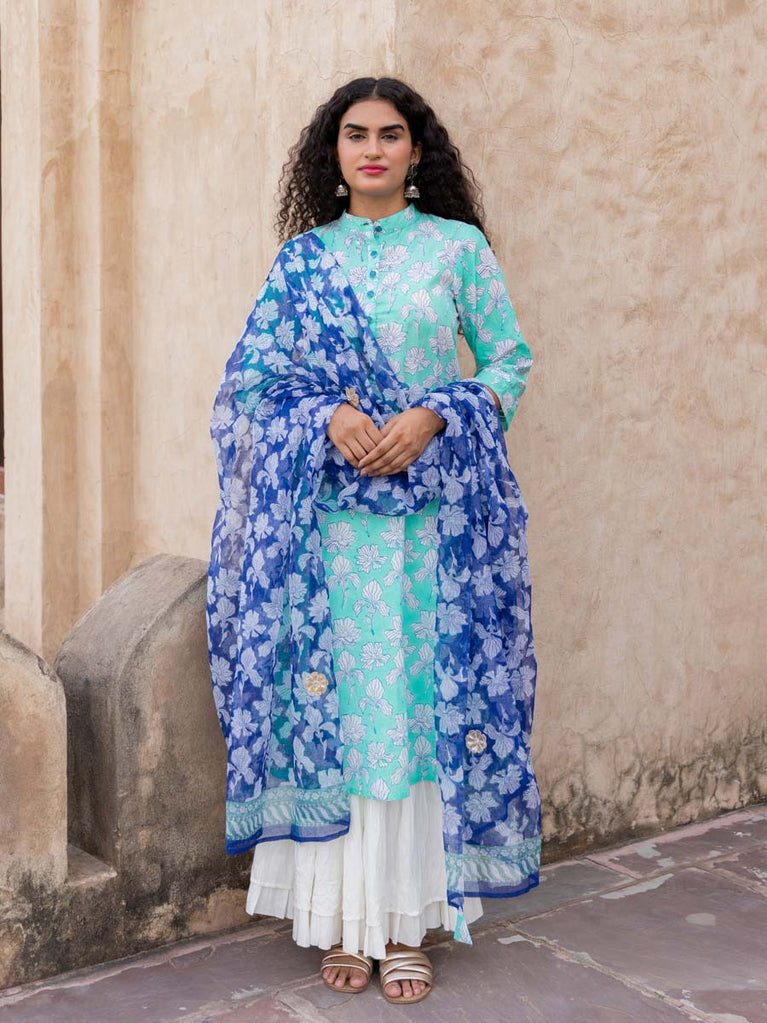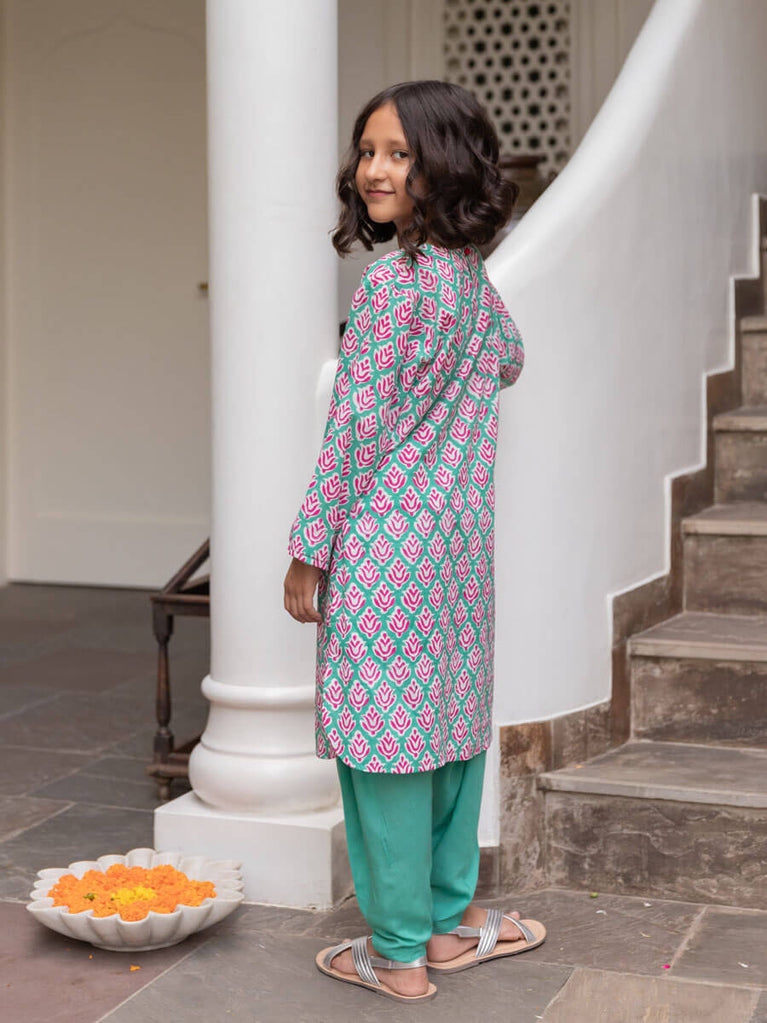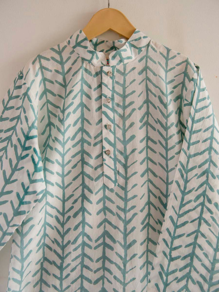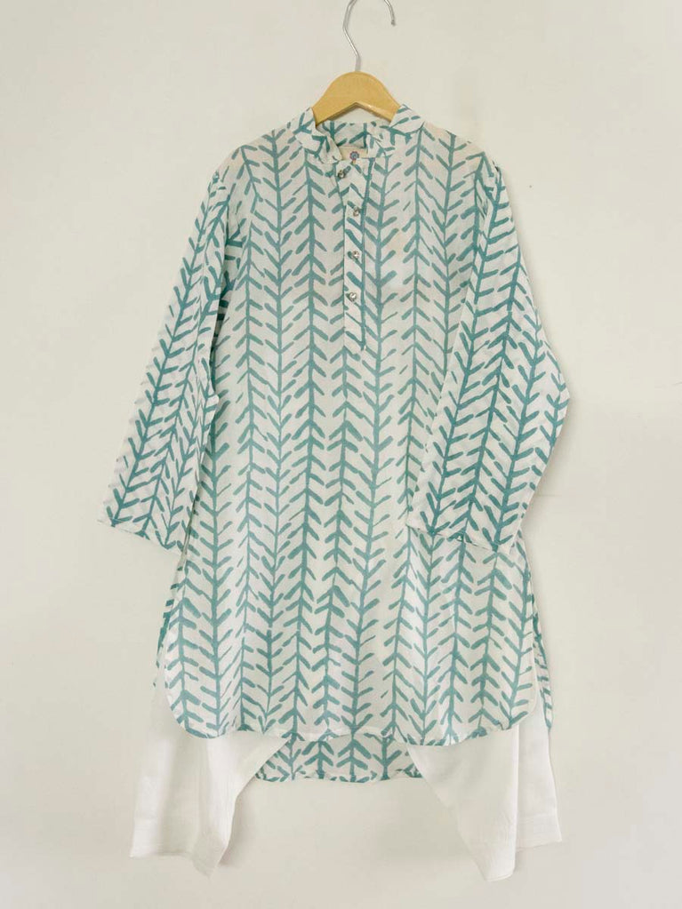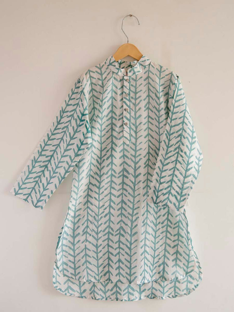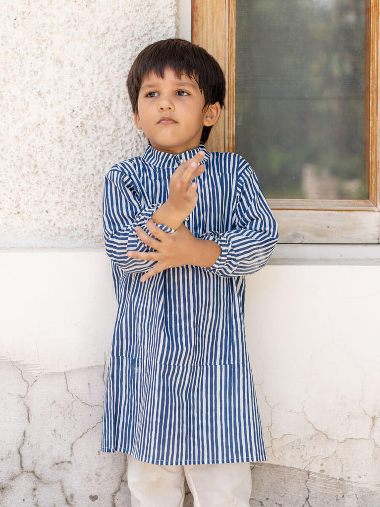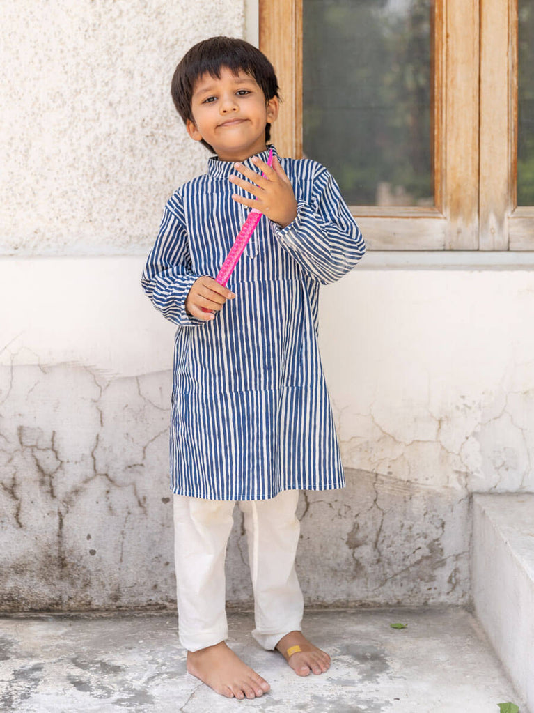 Yellow Stripes Organic Cotton Block Printed Kurta