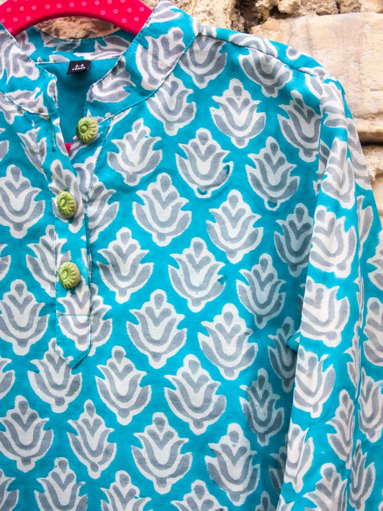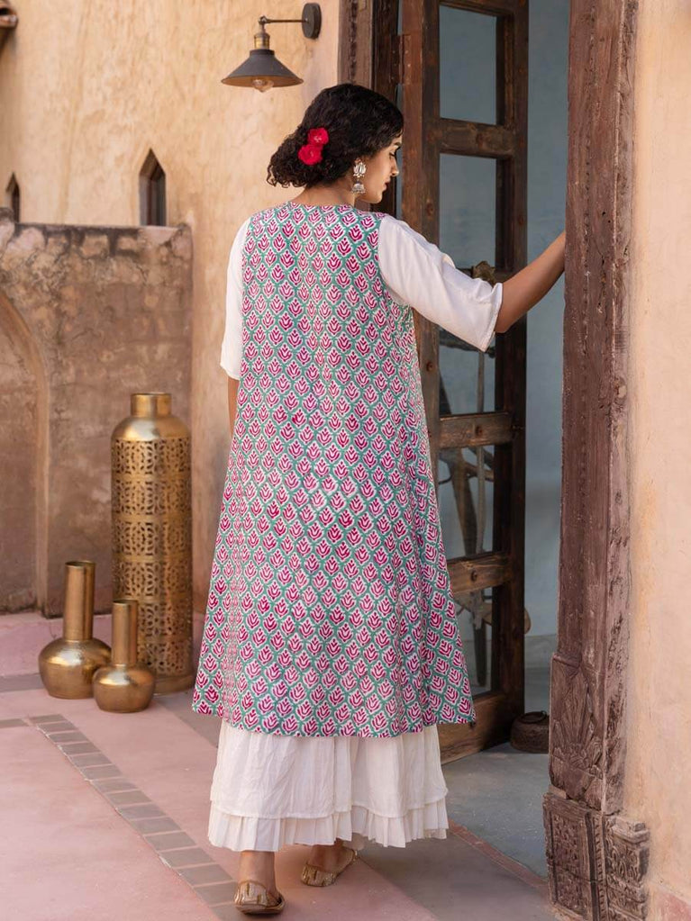 Set of 3 - Anant Organic Cotton Block Printed Long Kurta with Jacket