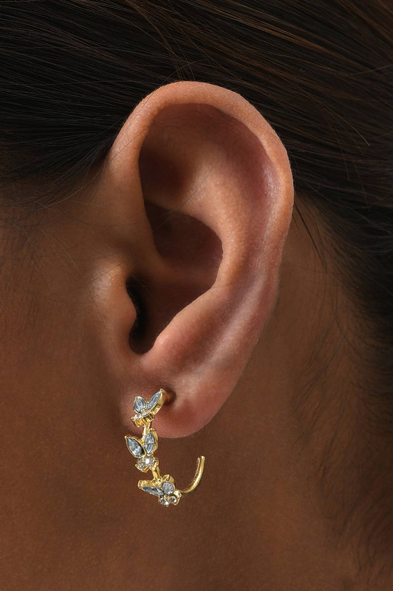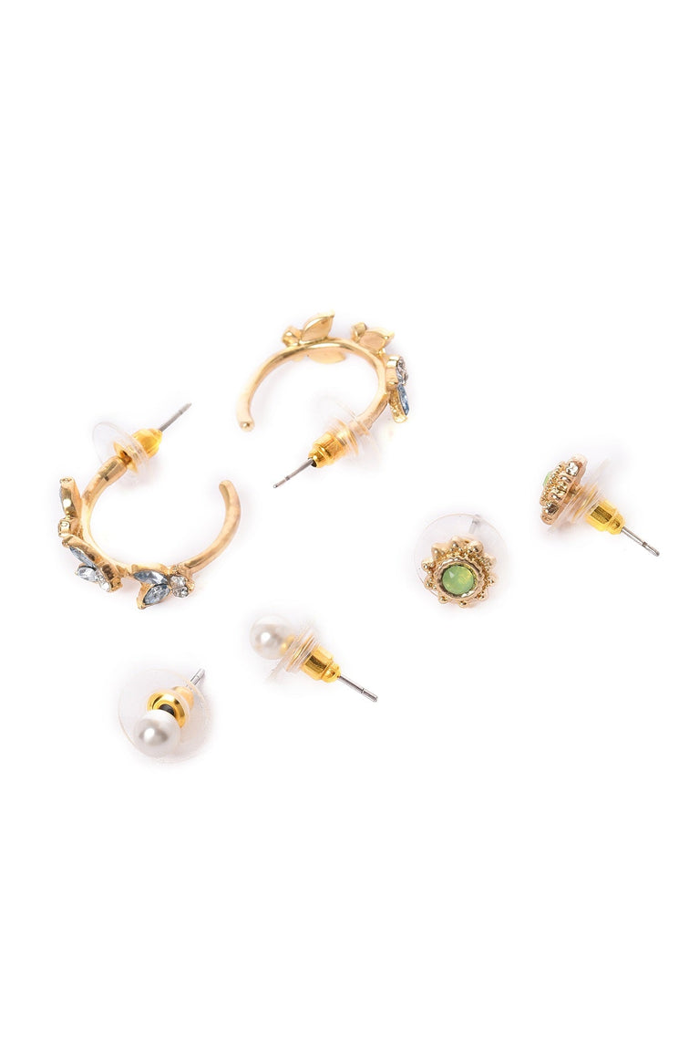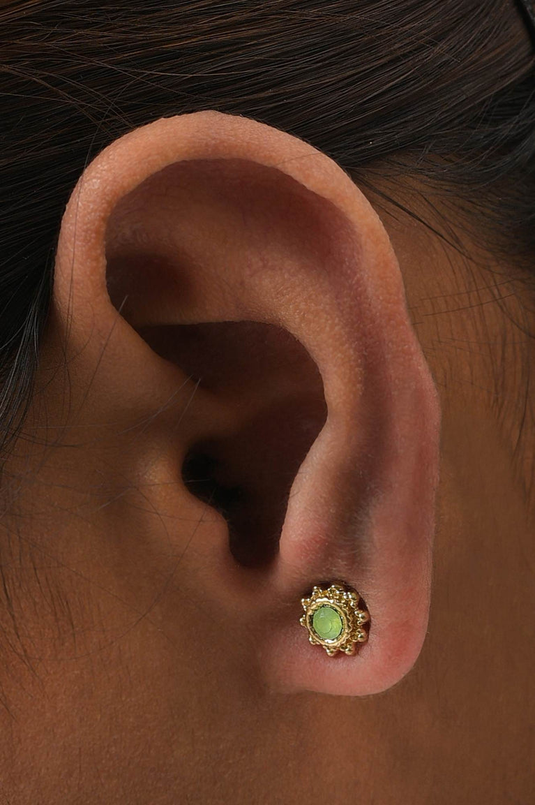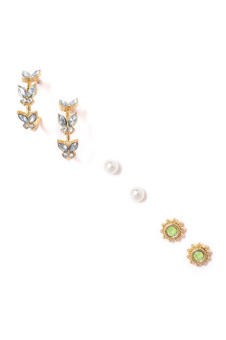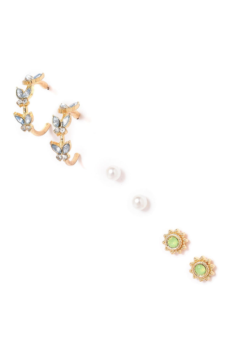 timeless green and blue combo of studs and hoop earrings with factetd stones detailing