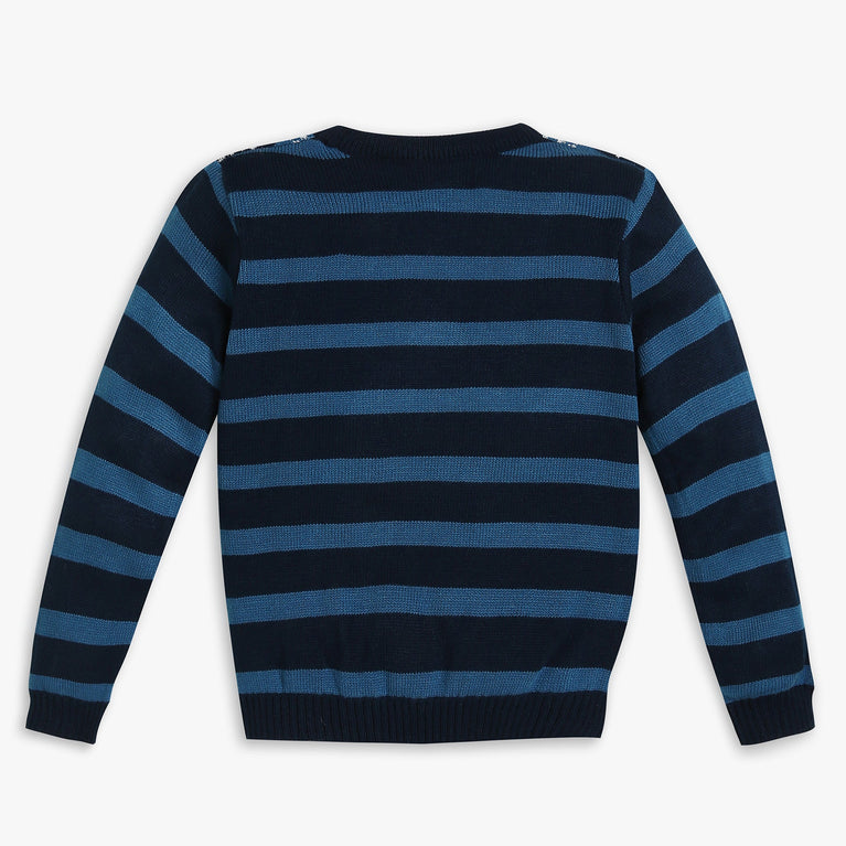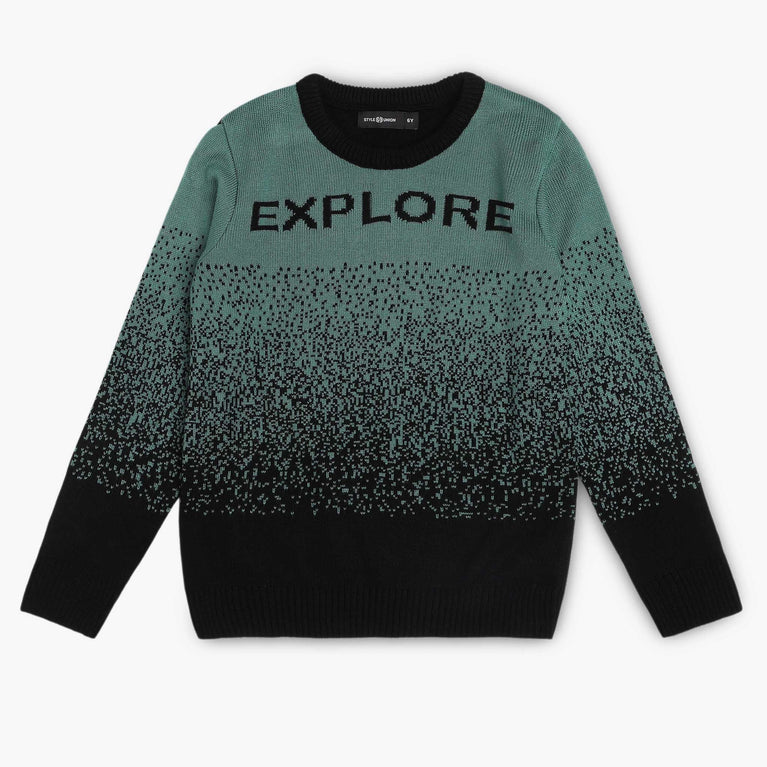 These solid pattern sweater has crew neck and full sleeve. Made from acrylic, your kid's feel comfortable wearing the product.