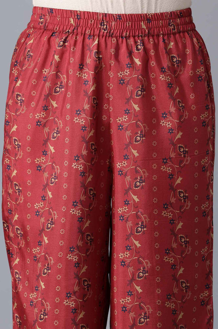 Head Out In Style For A Festive Night Or A Celebration At Friend's Place, You'Re Going To Ace In This Ethnic Look kurta Set. Crafted In Rayon, This Zari And Thread Embroidered kurta Also Features Sequin Detailing. Coordinated With Burnt Ochre Floral Print Palazzos Having Elasticated Waistband For A Comfortable Look.