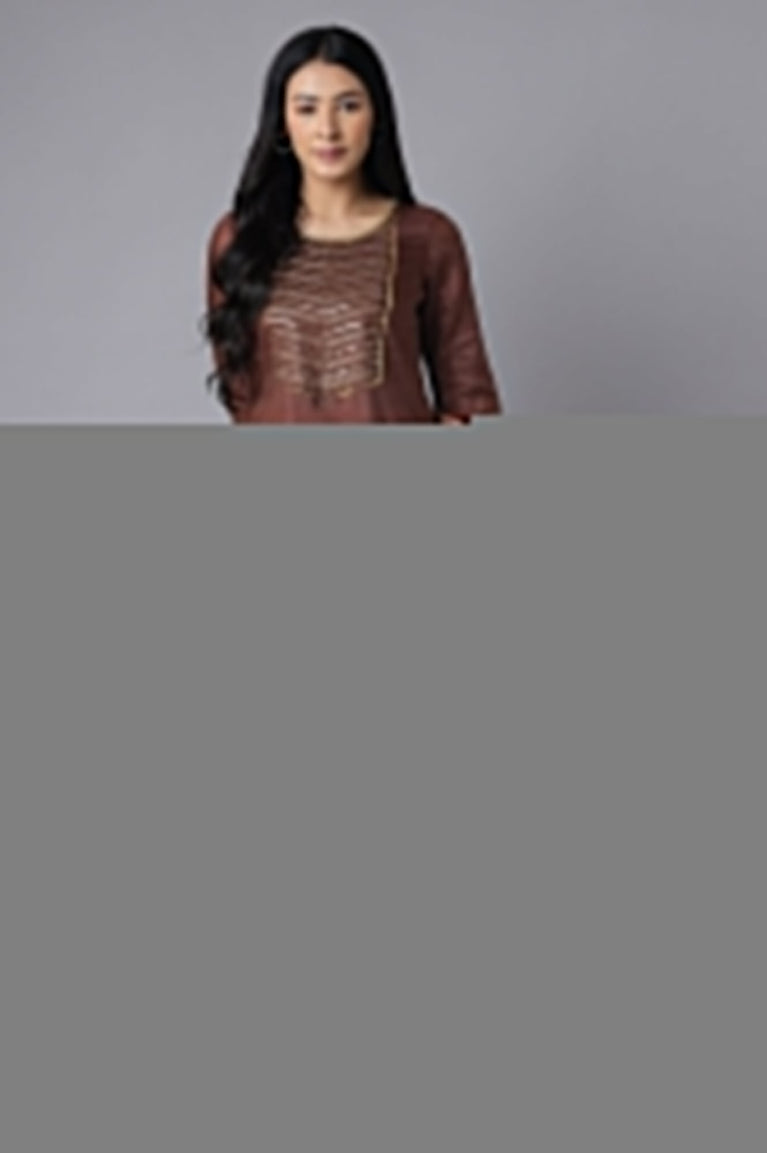 Refresh your festive or summer wardrobe with this elegant brown three-piece set from Aurelia. Crafted in a soft cotton blend, the straight-fit kurta features a delicate floral print with bead detailing and a flattering sweetheart neckline. The 3/4th sleeves and calf-length hem add a touch of grace, while side slits offer ease of movement. It’s paired with solid rayon palazzos that feature an elasticated waistband for all-day comfort. The printed cotton blend dupatta complements the kurta beautifully, making it ideal for both casual and semi-formal occasions. Designed for everyday elegance, this set combines style and comfort effortlessly. A must-have for women who appreciate subtle detailing and versatile ethnic wear. Hand wash recommended to maintain fabric and finish.