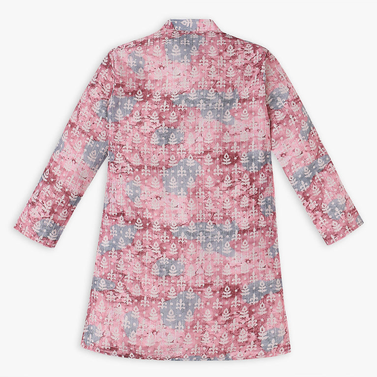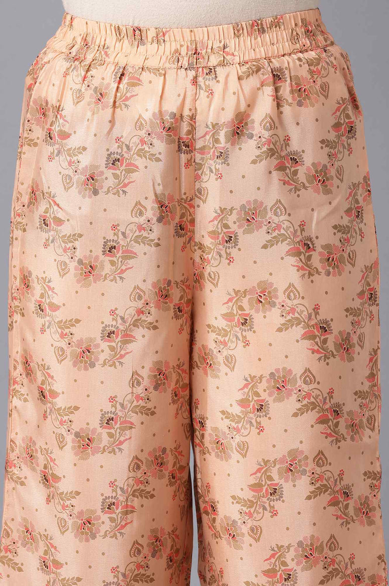 Brown Floral Printed kurta In Round Neck With Pink Straight Palazzo