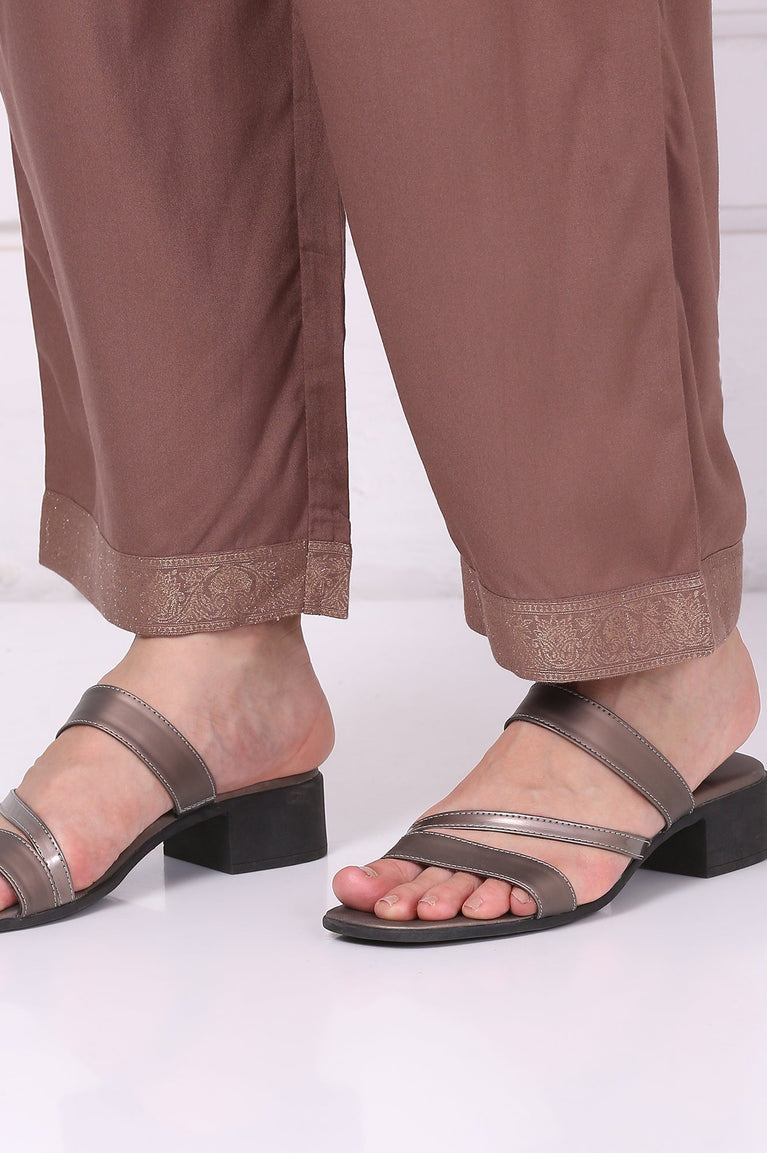 Make a sweeping entrance in this rich dark brown shantung kurta and culottes set to reinvigorate your wardrobe and mood. The kurta is adorned with zari embroidery and sequin work on yoke and sleeves hem. Coordinated with peach flared culottes in floral print and has mid-rise and partially elasticated waistband.