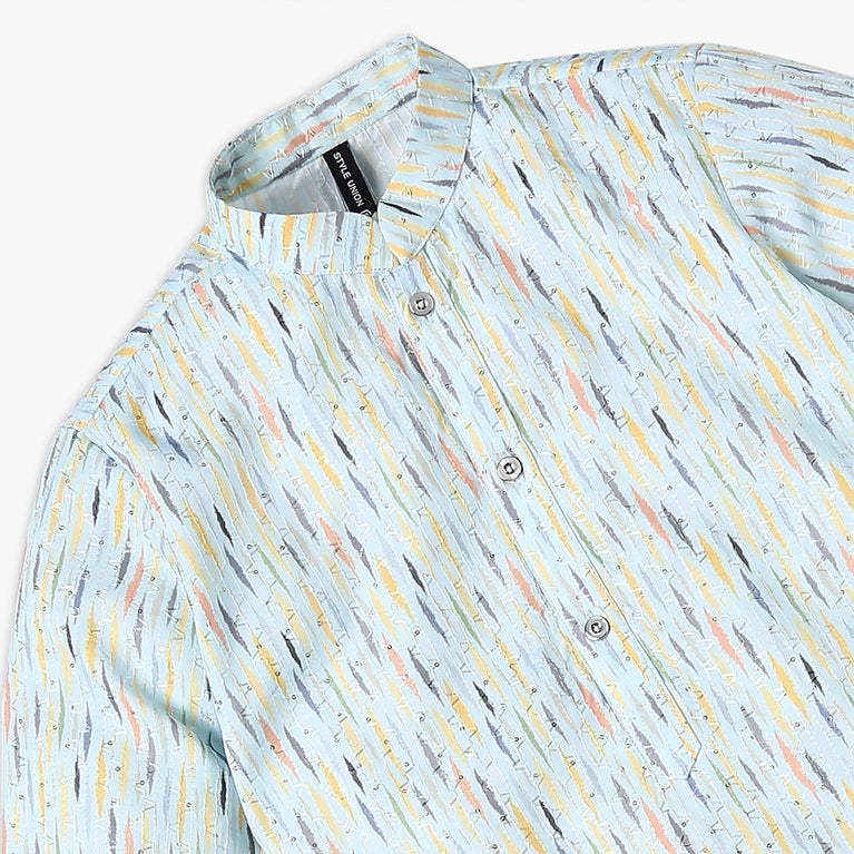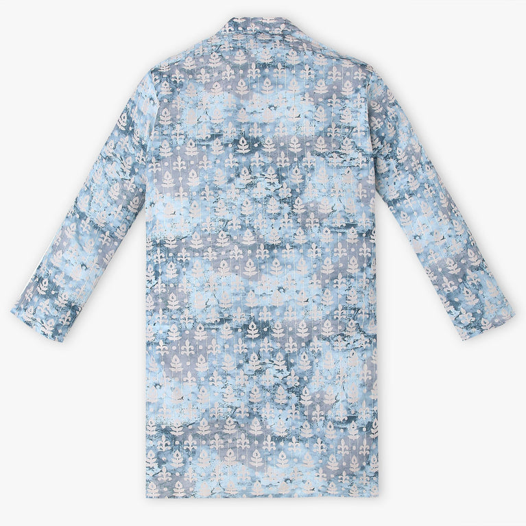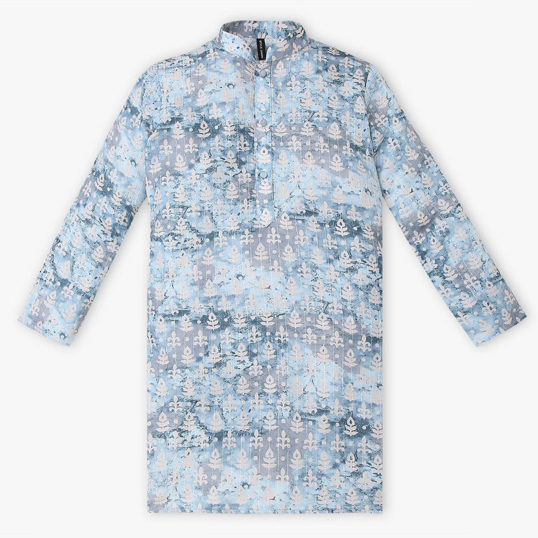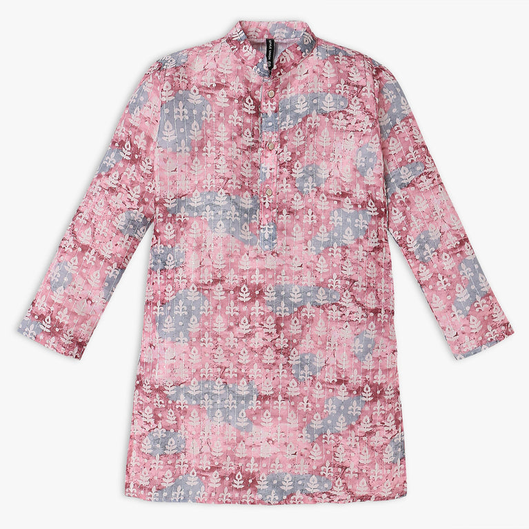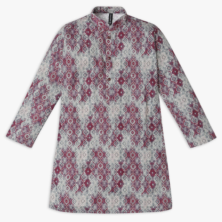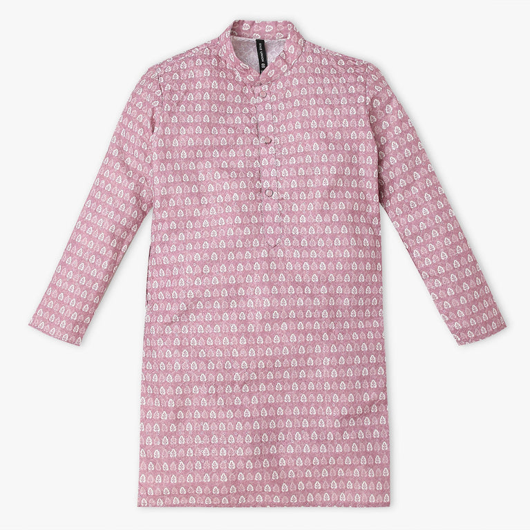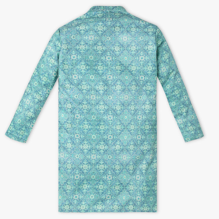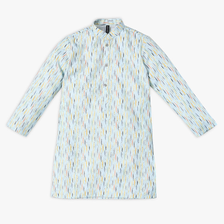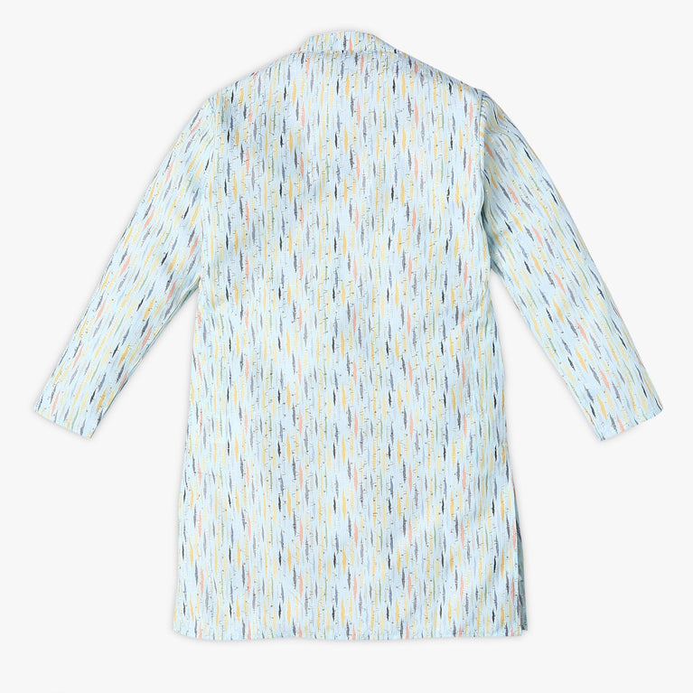 These printed pattern kurta with pant set has mandarin collar and full sleeve. Made from polyester cotton, your kid's feel comfortable wearing the product.