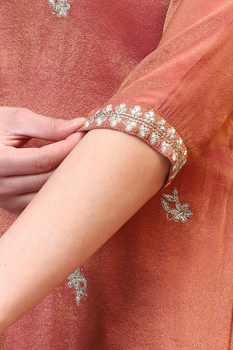 Brown Zari Embroidered Festive Straight Kurta, Palazzo Set with Dupatta