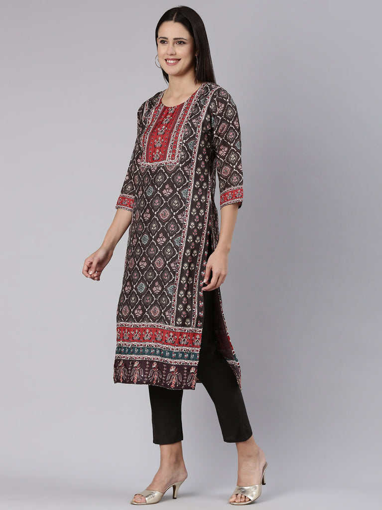 Neeru's Black Color Rayon Fabric Printed Kurta And Trouser