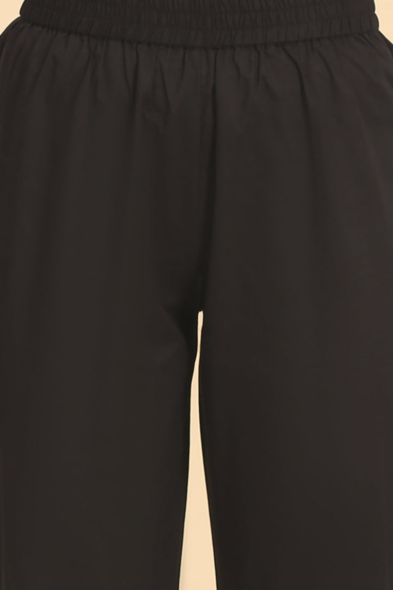 Black Thread Embroidery Cotton Blend Straight Kurta and Palazzo Set