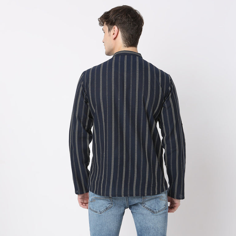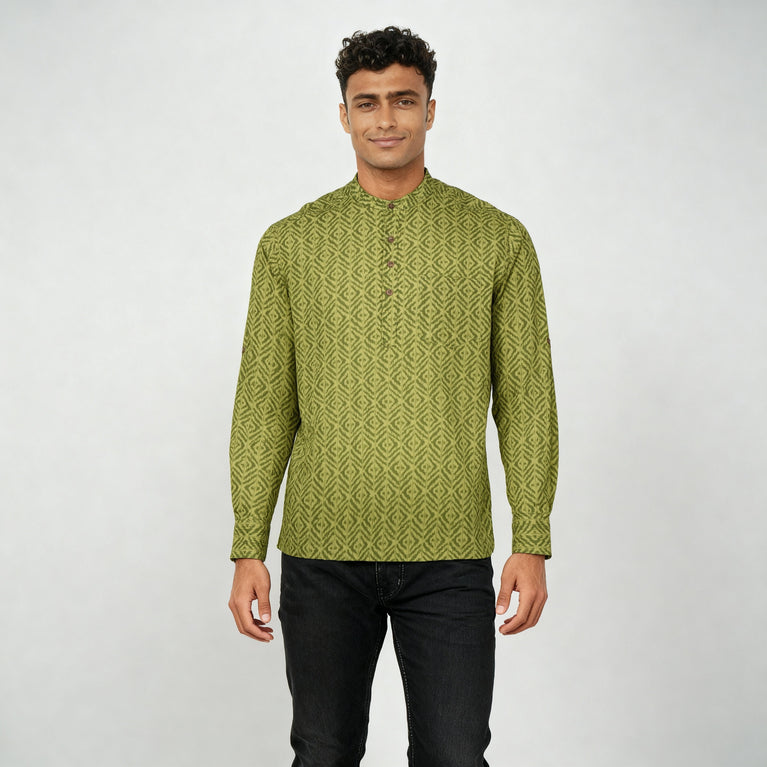 Artistry™ Yarn Dyed Structured Short Madrarin Collar Short Length Kurta Shirt