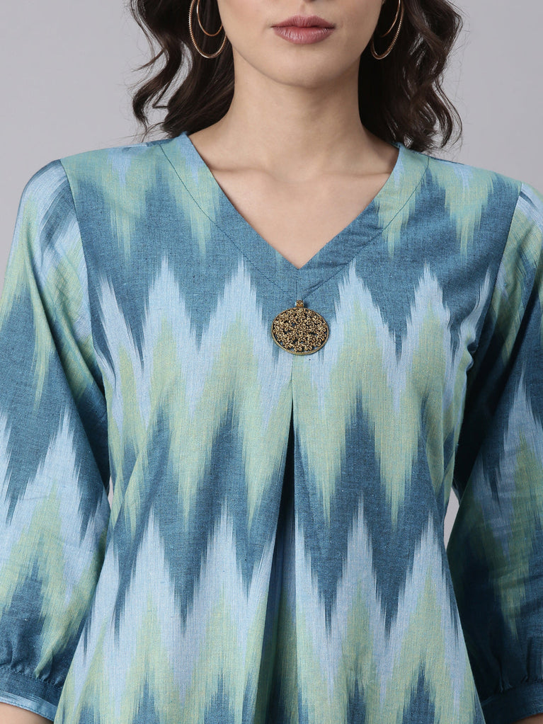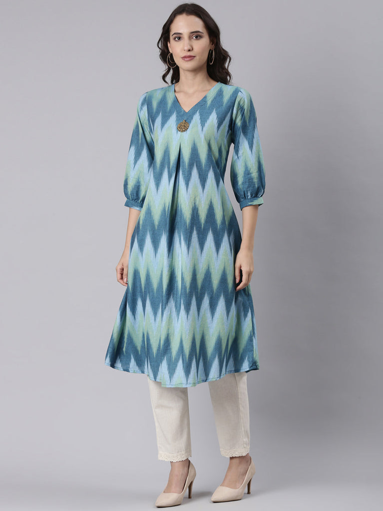 Blue cotton ikat printed kurta