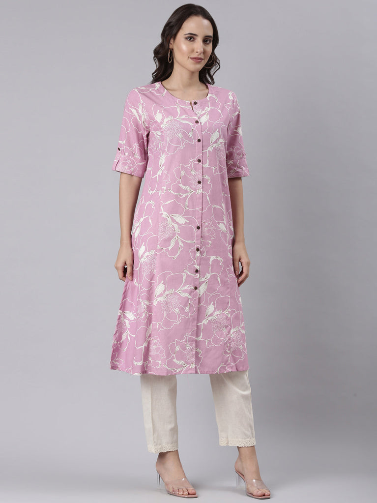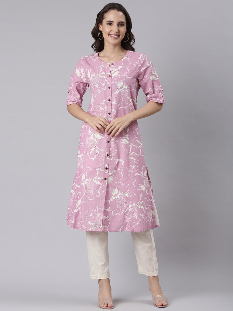 Lilac cotton printed kurta