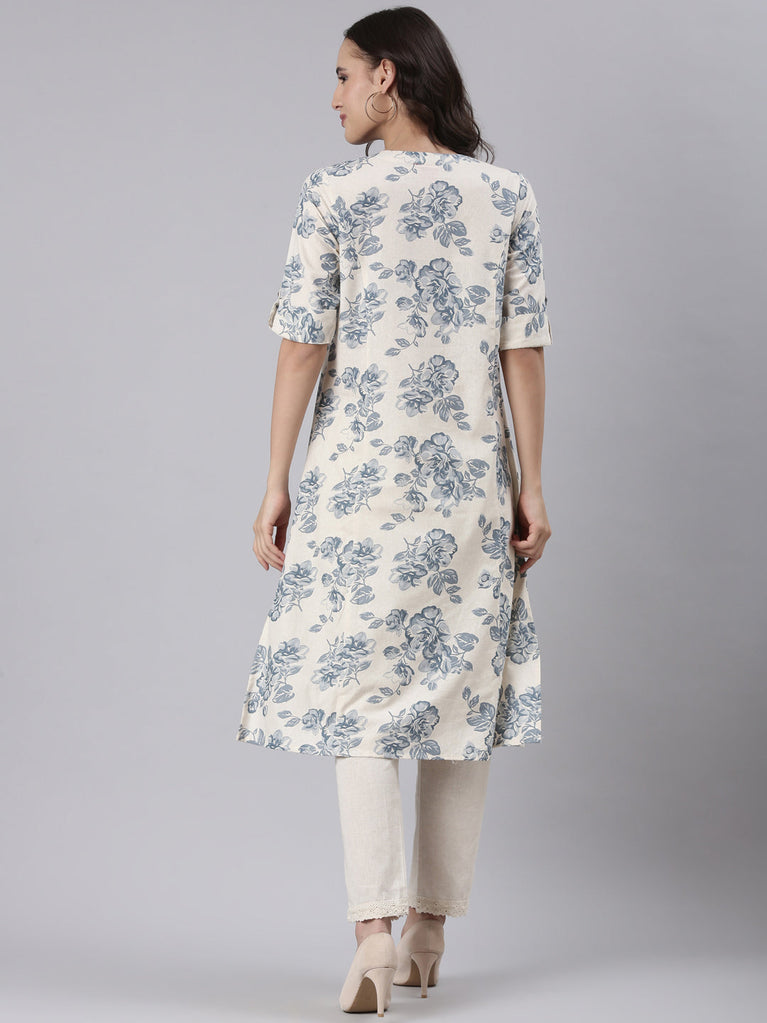 Neeru's Women Beige Ethnic Motifs Printed Mirror Work Anarkali Kurta