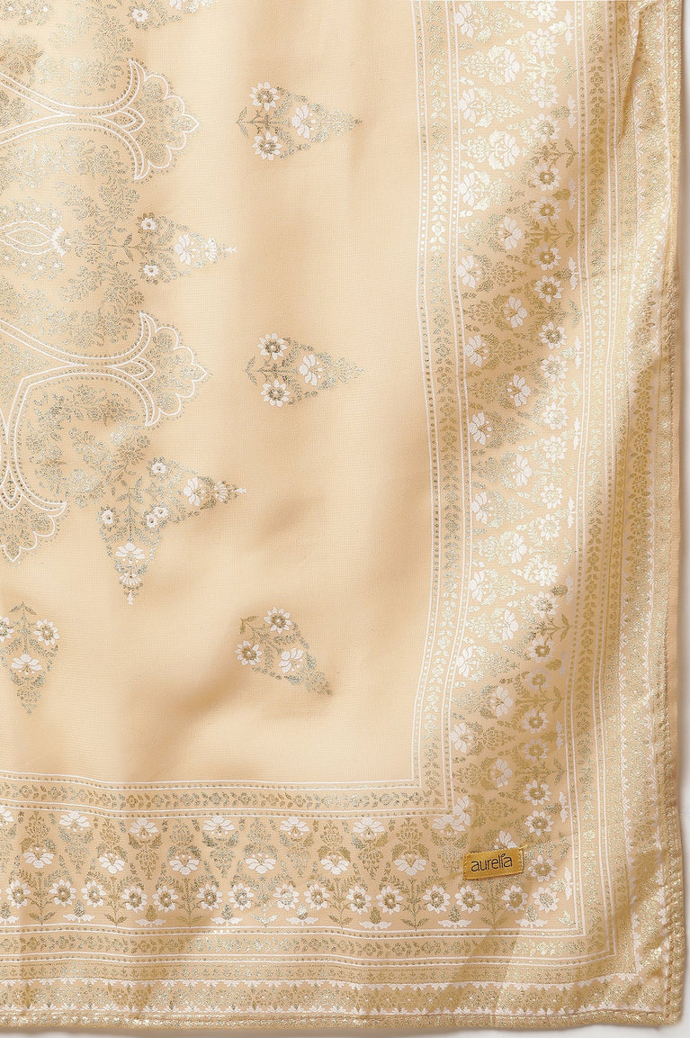 Get The Stunning Look For An Occasion With This Aurelia Dress Set. The Set Has Flared Foil Printed Dress Which Has Embellished Neckline And Sequin Work. It Is Paired With Golden Tights.