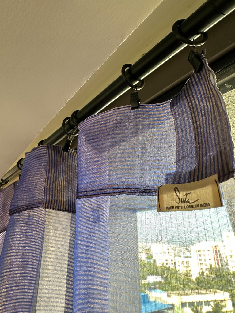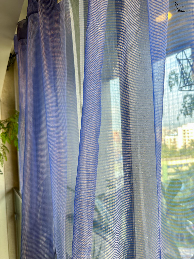 Ride the currents of style with Cobalt Wave, curtains crafted from exquisite organza silk embellished with shimmering zari in vibrant blue reflects the calming essence of ocean waves, promoting tranquility and creativity in your living space. Ideal for those looking to make a bold statement while maintaining a sense of peace, the curtains are your gateway to a refreshing and stylish environment.